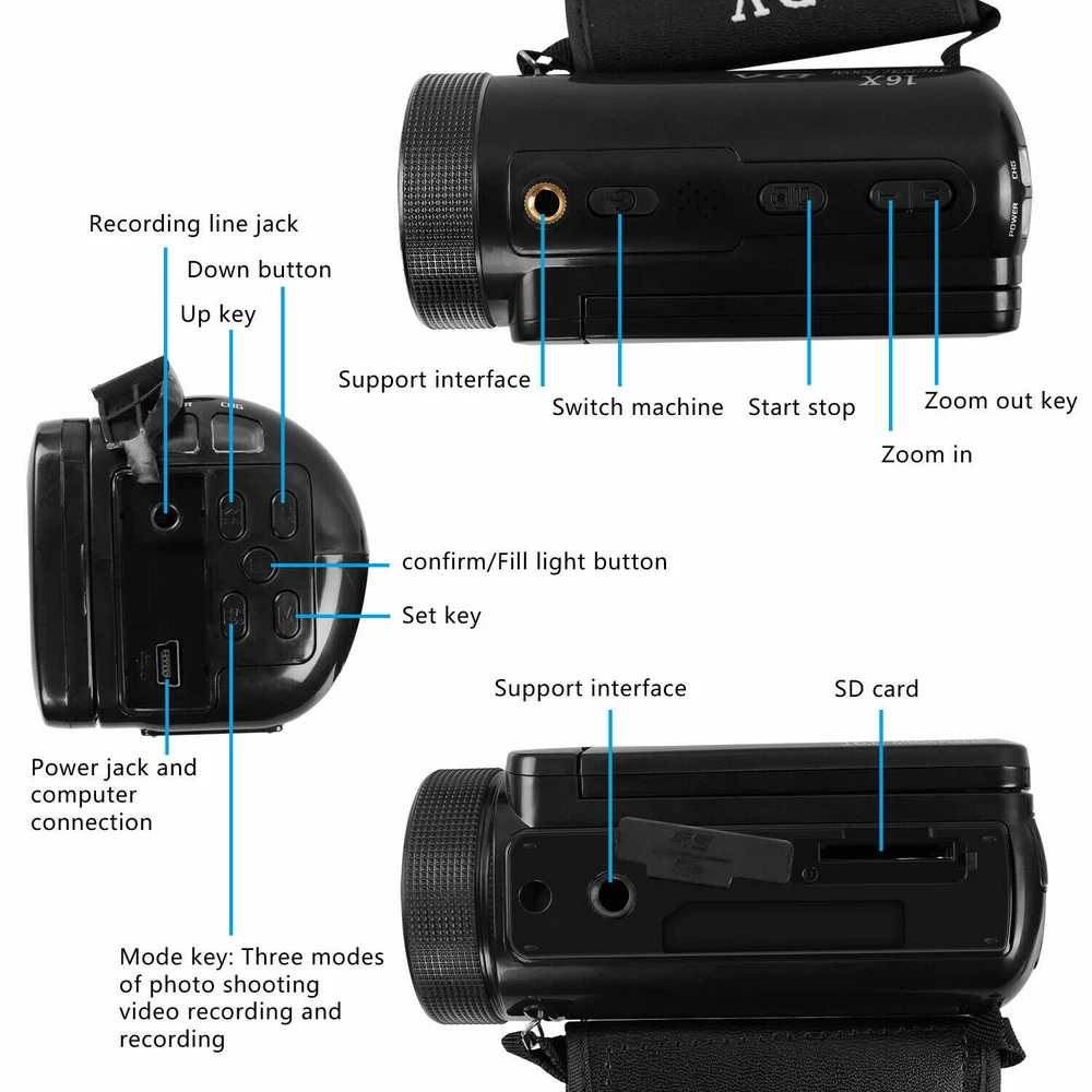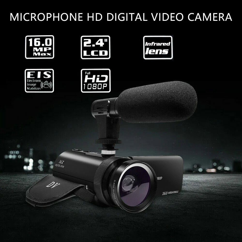HD 1080p Digital Video Camera YouTube Live Stream Vlogging Recorder Microphone HD 1080p Digital Video Camera YouTube Live Stream Vlogging Recorder Microphone Brand new and High quality. This Video Camera supports 1080P resolution with a 2.4" LCD screen, 16X zoom, Face Capture, Pause function, and more. This camera has an external microphone. High-quality microphones are very useful in conferences, seminars, media interviews, lectures, course notes and movies. Support SD memory car up to 32GB and standard tripod. The camcorder can be used as a webcam. Open your YouTube, Facebook and Instagram pages and start streaming. You can also enter the video interface to video chat with friends or family. The camcorder is small and lightweight, portable for you to carry around. Package includes: 1x Video Camera 1x USB Cable 1x Charger 1x Battery 1x Wide-Angle Lens 1x External microphone 1x User Manual Listing and template services provided by inkFrog