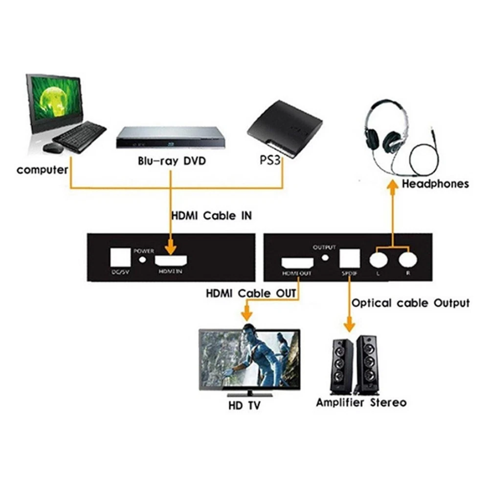 This audio extractor is a game-changer! It effortlessly converts HDMI to optical or analog audio with crystal-clear 1080P/4K passthrough. The build feels solid, setup was plug-and-play simple, and it solved my soundbar compatibility issues perfectly. Arrived quickly and works exactly as advertised - highly recommend for anyone needing flexible audio extraction!