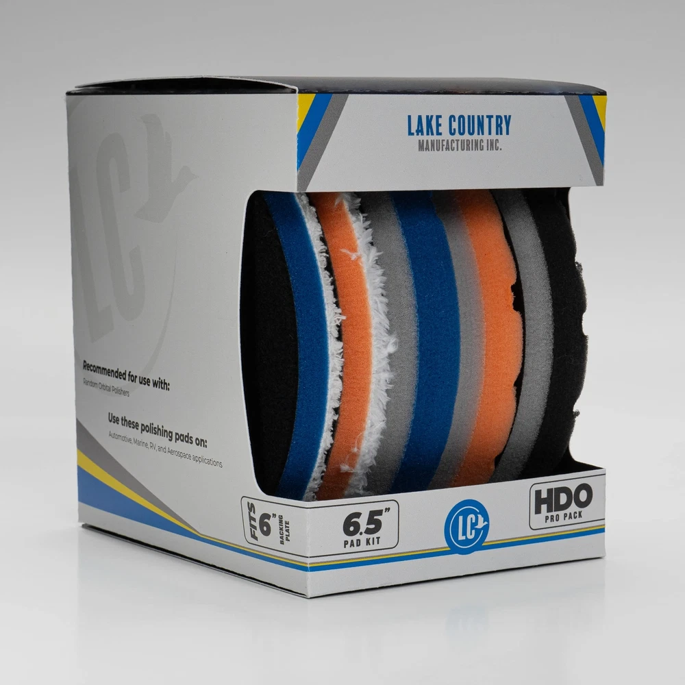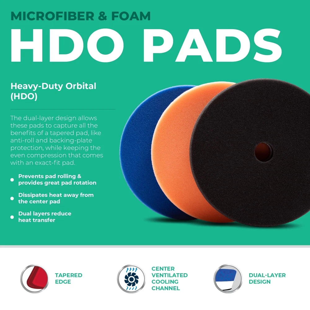 HDO Polishing Pad Kit (5 pads, 6.5”): This foam buffing pads drill comes in a set of 5 premium-grade HDO buffer polisher pad containing 1 blue heavy polishing pad, 1 orange light polishing pad, 1 ultrasoft black finishing pad, and 2 microfiber pads. These foam buffing pad for drill are designed to polish your car’s surface with ease and efficiency, removing scratches, swirls, and imperfections. These foam buff pads are made with high-quality materials and offer top performance for your car detailing needs. These HDO foam buffer polisher pads fit a 5-inch backing plate using a hook-and-loop attachment and are designed for long-stroke dual-action polishers. These hand polishing pads for cars give your car a glossy and lustrous look that reflects light and enhances its color. This foam buffing pads fibers are densely packed and securely attached to the backing, preventing them from falling off or linting. This makes the buffing pad cleaner tool durable and long-lasting, as well as gentle on your car’s surface. The hook and loop system of car detailing polisher also helps to smooth out swirls and fine scratches, creating a uniform and flawless finish. Our car buffing pads for drill have 2 foam layers that help stop heat buildup inside the pad by reducing friction and help deliver a powerful polishing job. The drill pads for car polishing by come in different sizes and shapes to suit your needs. The polisher pads for car detailing are compatible with most polishers and can be used with any polishing compound or wax. --- About Us: Manufacturing is a privately owned manufacturer of buffing and polishing products for the industrial; paint, body, and equipment (PBE); detailing, and consumer markets. We strive to find profitable solutions for our worldwide network of distribution partners by developing proprietary products and customized buffing systems. HDO Foam Buffing Pads (Set of 5): Experience the difference quality makes. This foam polish pad pack of 5 contains 1 blue heavy polishing pad, 1 orange light polishing pad, 1 ultrasoft black finishing pad, and 2 microfiber pads - buffer pads that suit all your needs. Long-Lasting: These HDO foam buffing pads for car detailing fit 5-inch backing plates using a hook-and-loop attachment and are designed for long-stroke dual-action polishers. Sturdy with tapered edges, our heavy-duty polish pads for car detailing prevent pad rolling to help minimize haze. Dual-Layer: This pack of 5 buffing car pads has HDO foam pads for you to trust its stability. The 2 foam layers stop heat buildup inside the pad by reducing friction. With better machine control on curved panels, these buffing machine pads can deliver a powerful polishing job. Cooling Chamber: Each foam polishing pad blocks heat transfer between layers and provides the same benefits as thin foam pads. This cooling chamber of each buffing pad redirects heat to keep the pad from caving inward. Pads: A family-owned business since 1977, we manufacture detailing tools for the automotive, aviation, and marine industries as well as the consumer market. Our goal is to make polishing tools that are consistent and high quality.