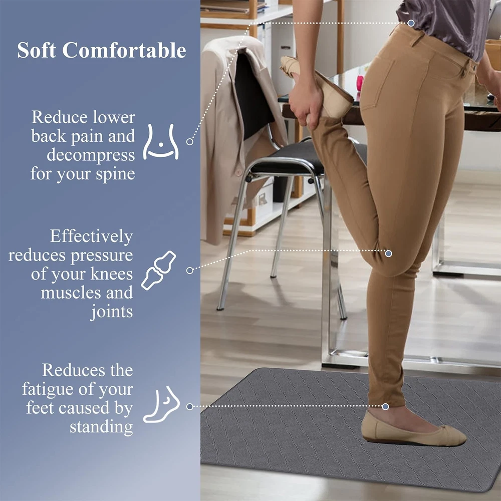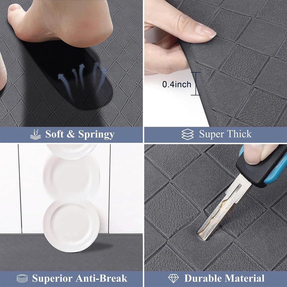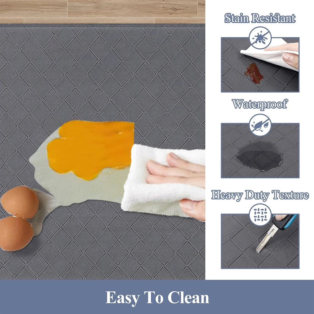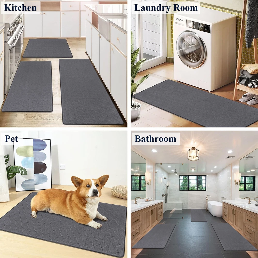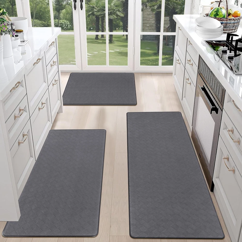HEBE Anti Fatigue Kitchen Mats for Floor Set of 3 Cushioned Kitchen Rug Sets 3 Piece Non Slip Kitchen Rugs and Mats Waterproof Comfort Standing Mat Runner for Home Office,Sink,Laundry Product Details Size: 17.3''x28''+17.3''x36''+17.3''x48'' Color: Dark Grey Brand: HEBE MPN: DFG3setDarkgry UPC: Does not apply EAN: Does not apply Color: Dark Grey Brand: HEBE Special Feature: Cushioned, Waterproof, Fade Resistant, Stain Resistant, Non Slip Pattern: Geometric Product Care Instructions: Wipe with Damp Cloth Color: Dark Grey Brand: HEBE Special Feature: Cushioned, Waterproof, Fade Resistant, Stain Resistant, Non Slip Pattern: Geometric Product Care Instructions: Wipe with Damp Cloth Material Type Free: PVC Only Item Thickness: 0.4 Inches Manufacturer: HEBE Number of Items: 3 Item Weight: 6.44 pounds Product Dimensions: 48 x 17.3 x 0.4 inches Country of Origin: China Date First Available: July 24, 2024 Anti Fatigue Kitchen Mats for Floor 3 Piece Set: Our farmhouse antifatigue kitchen mat and runner set measures 17.3''x28''+17.3''x 36''+17.3''x 48''.The comfort standing mat with runner are made of premium PVC materials,which is not easily deformed Comfort Anti-fatigue Mats for Kitchen Floor: 0.4'' thick cushioned anti fatigue kitchen floor mats are ergonomically engineered,so thick and cushioned that you are able to stand comfortably while working in the kitchen or at any work station Non Slip Kitchen Rug Set: Backing of the anti fatigue gel kitchen mat set is made of non-slip material;also beveled edges help prevent tripping.Please clean the floor before use.Clean and dry surface will be conducive to the kitchen mats slip resistant Waterproof Kitchen Rugs Set of 3: If the kitchen rug runner set gets dirty,just simply wipe clean with a damp cloth or sponge in a timely manner,or use any common household cleaner to clean.Please do not put it in the washing machine Versatile Cushioned Kitchen Rugs and Mats Set: Washable kitchen floor carpet set provides ample support for standing in kitchen, kitchen sink, stove, laundry room, office, farmhouse or any other high-traffic indoor or outdoor space