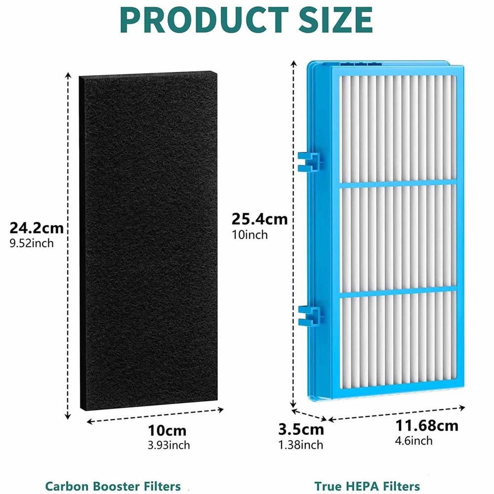 Product features: HEPA-Type filtration effectively removes up to 99% of smoke and pollutants from the airstream; Captures allergens and pollutants as small as 2 microns; Made of Cotton; Powerful carbon air filter replacement is enhanced with baking soda uses charcoal with oxygen to create tiny pores between the carbon atoms to trap odors and pollutants; Helps control odors from pets, bathrooms, garbage, nurseries, and kitchens; For best results change every 8-12 months. Package includes: replacement HEPA filters; replacement carbon booster sheets. Fits Holmes air purifiers models: HAP412, HAP422, HAP424, HAP702, HAP706, HAP716, HAP1702, HAP2400, HAP9240, HAP9241, HAP9242, HAP9243, HAP9412, HAP9413, HAP9414, HAP9415, HAP9422 HAP9423, HAP9424, HAP9425 Also fits Bionaire model air purifier: BAP260, BAP520, BAP815, BAP825, BAP9200, BAP9700. Disclaimer: Not an OEM product. This is not a Holmes original product. This is a generic replacement part compatible with Holmes. Any use of the Holmes brand name, model or part designation for this product is made solely for purposes of demonstrating compatibility. On Feb 13, 2025 at 03:45:21 PST, seller added the following information:
