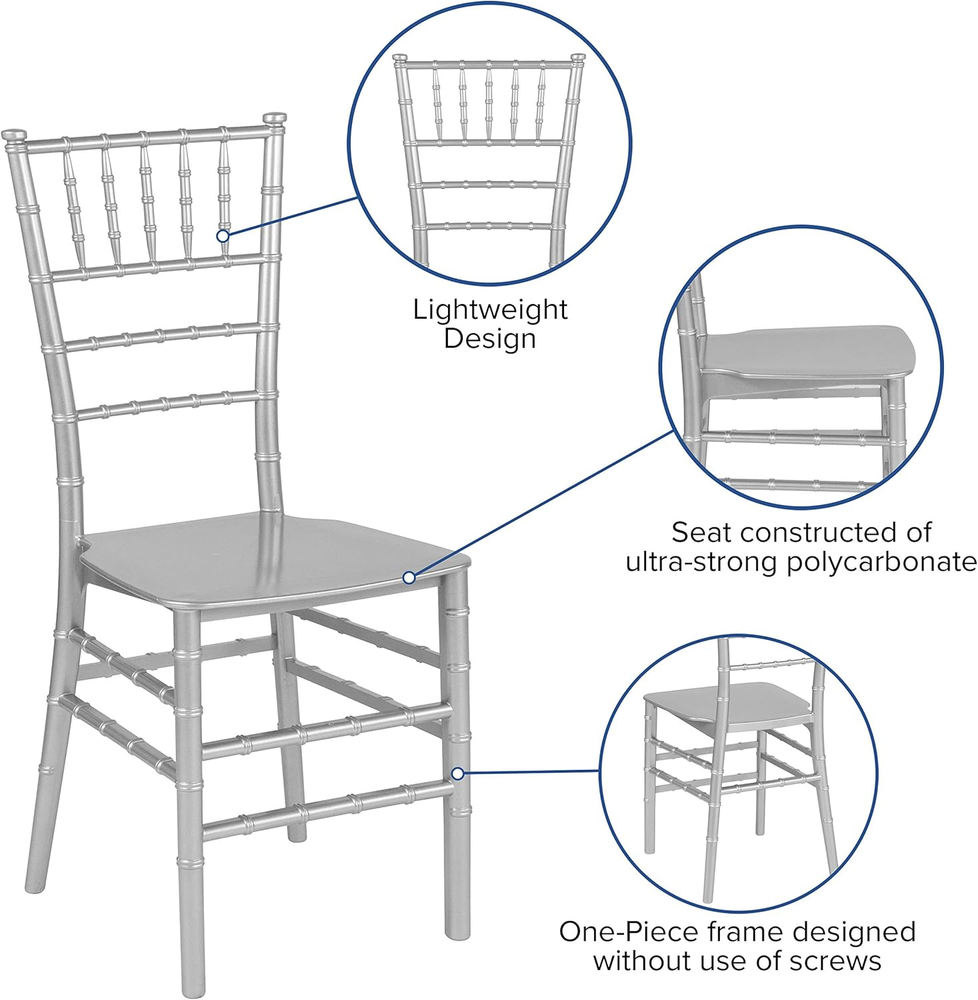 Store New Arrivals Add to Favorite View Feedback Contact HERCULES Series Silver Resin Stacking Chiavari Chair Description Item model number LE-SILVER-M-GG Style Traditional Cushion Style Flat Pattern Solid Age Range (Description) Adult Seat Height 17.25 Inches Unit Count 1.0 Count Frame Material Resin Seat Material Type Resin Maximum Weight Recommendation 1000 Pounds Finish Type Silver Included Components Flat Seat Resin Chiavari Stack Chairs Indoor/Outdoor Usage Outdoor Chair Backrest Width 14.5 Inches Back Style Other Room Type Tent Item Weight 7 pounds Surface Recommendation Hard Floor Is Foldable No Special Feature Weather Resistant Material Resin Item Weight 7 Pounds Weight 7 Pounds Color Silver Form Factor Other Furniture Finish Plastic Global Trade Identification Number 00889142458067 Shape Square Recommended Uses For Product Dining Product Dimensions 18.75"D x 15"W x 35"H Seat Depth 15 inches Size Pack of 1 Set the standard for iconic, sophisticated seating at your next event or gathering with this stacking resin chiavari chair. This beautiful chair is a synonym for elegance and will become your premier choice for both indoor and outdoor events Set the standard for iconic, sophisticated seating at your next event or gathering with this stacking resin chiavari chair. This beautiful chair is a synonym for elegance and will become your premier choice for both indoor and outdoor events Set the standard for iconic, sophisticated seating at your next event or gathering with this stacking resin chiavari chair. This beautiful chair is a synonym for elegance and will become your premier choice for both indoor and outdoor events Set the standard for iconic, sophisticated seating at your next event or gathering with this stacking resin chiavari chair. This beautiful chair is a synonym for elegance and will become your premier choice for both indoor and outdoor events Set the standard for iconic, sophisticated seating at your next event or gathering with this stacking resin chiavari chair. This beautiful chair is a synonym for elegance and will become your premier choice for both indoor and outdoor events The Silver Resin Chiavari Chair is ideal for weddings, banquets and special events from casual to the most elegant. Constructed of ultra-strong resin and polycarbonate, this chair is very lightweight, yet extremely strong and wobble-free. These beautiful chairs ship fully assembled, can be stacked 8 high for storage. With its durable, lightweight construction and elegant styling, this Chiavari chair will be the seating choice for all of your special events. You can use the chair outdoors, which makes it a great choice for summertime gatherings and special events. ABOUT US We offer the best prices around on high quality products. Our E-store includes media such as books, movies, music and games while offering electronics, toys, sporting apparel, clothing, tools, general home, garden items and more. SHIPPING We are always working hard to ensure your package arrives as soon as possible. Please understand that some factors like weather, high postal traffic, and the performance of shipping companies are outside of our control. We offer free shipping to the lower 48 states and ship within 2 business days of payment, usually sooner. We do not accept P.O. Boxes. Please provide a physical address. For shipping outside of the continental USA, we only use eBay's Global Shipping Program.The item is shipped to KY and then sent to the rest of the world. International customers are responsible for all duties and taxes. Continue to check out in order to calculate costs for shipping the item to your country. Messages regarding eBay's Global Shipping Program MUST be directed at eBay EXCLUSIVELY. RETURNS We offer a 30-Day Return Policy on items which you are not completely satisfied with. You have the option for a full-refund or an exchange of the item. No returns are available on items shipped outside of the USA. PAYMENT We accept PayPal. CONTACT US This page content is yet to come Please ad us to your favorite seller and visit again later Thank You CUSTOMER SATISFACTION We try our very best to make sure every customer is completely satisfied. If there's a problem, message us! We're happy to help. WE ACCEPT Copyright © 2021 AutoDS. | All Rights Reserved