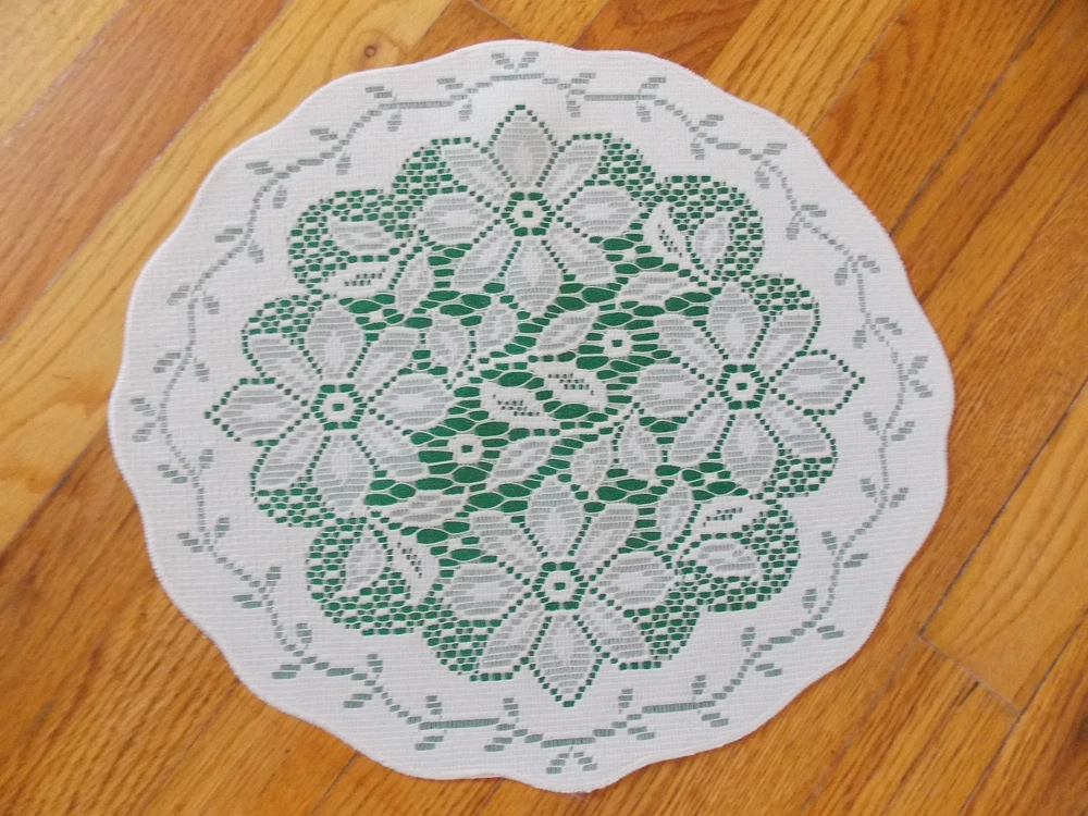 Brand: Heritage Lace gtin13: Does not apply Country of Manufacture: United States Seller Notes: “New without tags, may be considered seconds” Country/Region of Manufacture: United States MPN: NONE Color: GREEN AND WHITE Material: Polyester Blend Shape: Round Model: NONE UPC: Does not apply Pattern: POINSETTIA