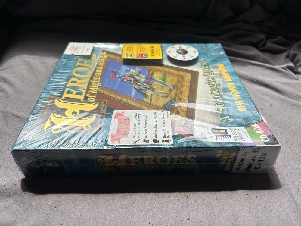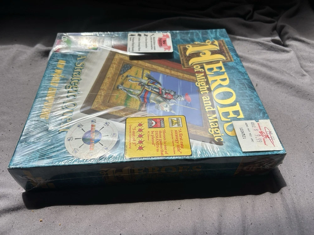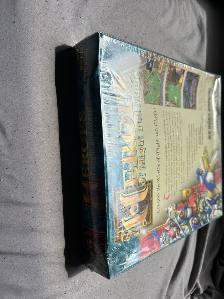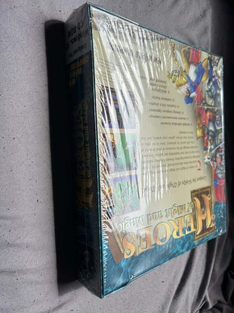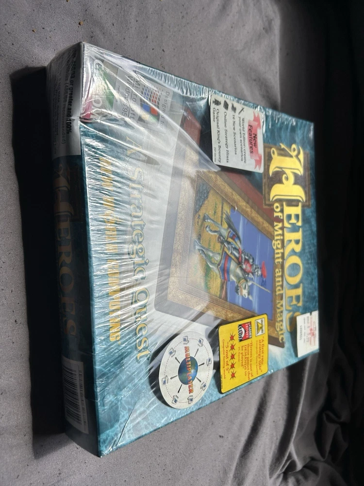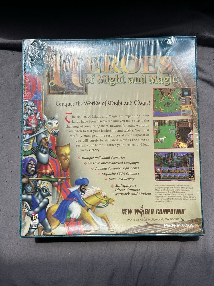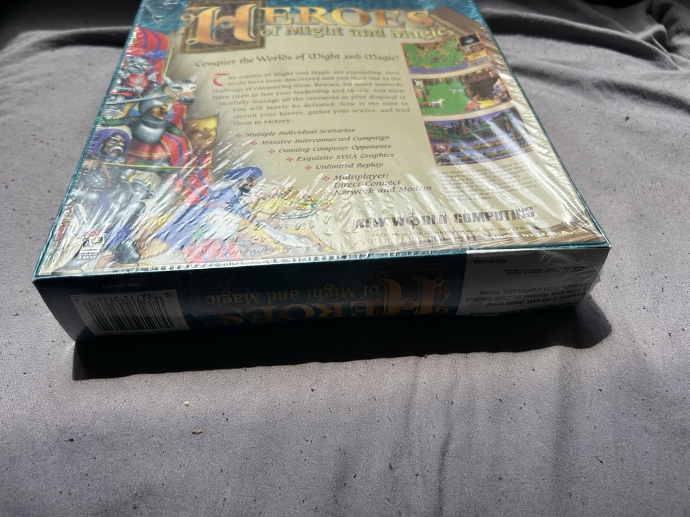 The product is a brand new sealed copy of the "Heroes of Might and Magic" PC CD-ROM game from 1996. Published by New World Computing, the game is a part of the "Heroes of Might and Magic" series and features the sub-genre of boxing. This E-Everyone rated game offers exciting gameplay on the PC platform, providing a thrilling experience for players of all ages. Perfect for collectors or fans of the franchise, this mint condition big box edition is sure to delight any gamer looking for a classic addition to their collection.