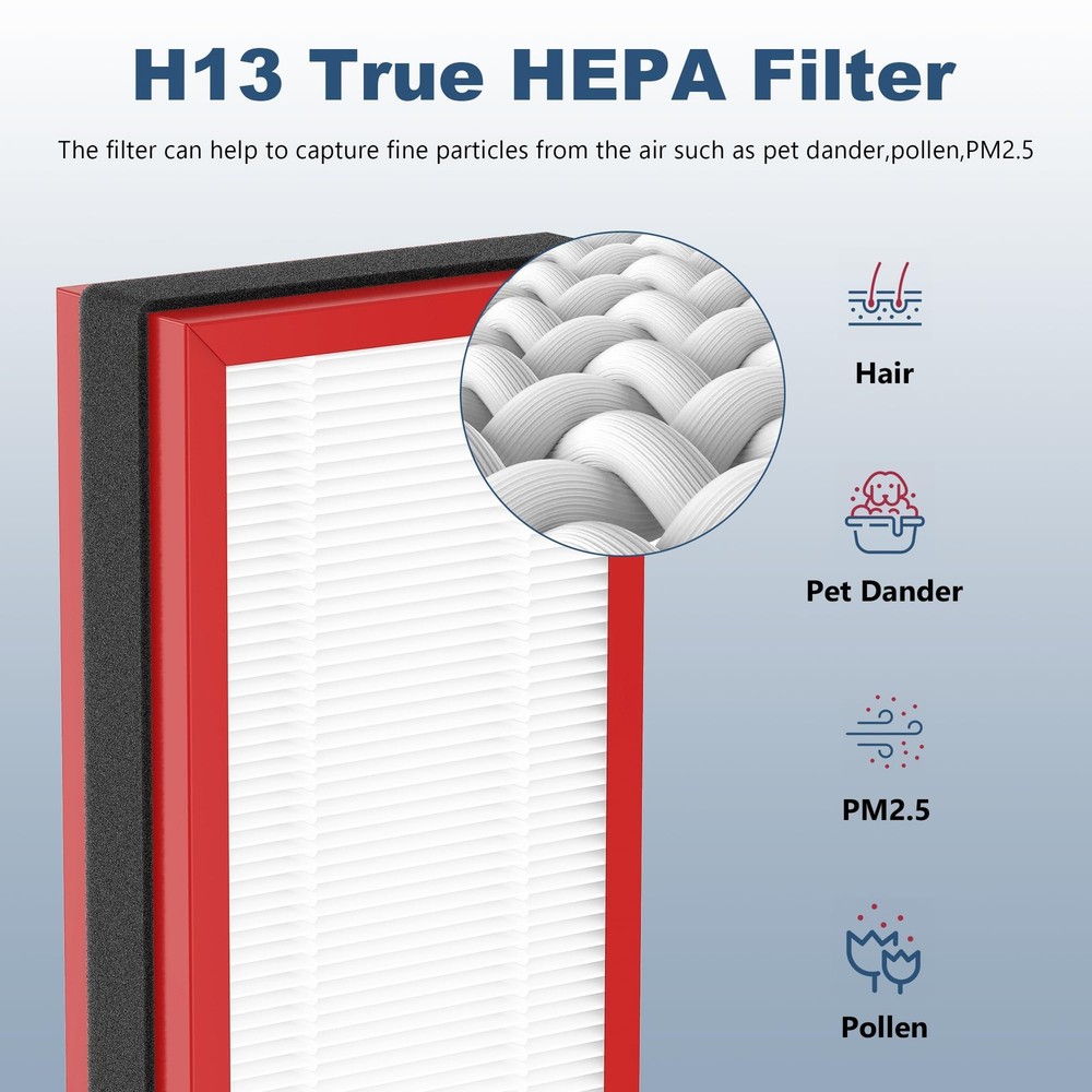 HFD280 HFD280B replacement filter Perfect Compatibility: These filters are compatible with HFD280 and HFD280B Air Purifiers, providing a perfect fit for optimal performance and ease of installation H13 True HEPA Filter: The 2 Packs HFD280 H13 True HEPA Replacement Filter is designed to capture as small as 0.3 microns airborne particles, ensuring that your environment remains clean and healthy Long-Lasting Performance: Each 2 Packs HFD280 H13 True HEPA Replacement Filter is engineered for durability, offering extended usage while maintaining high filtration efficiency Easy Installation: Replacing your old filter with the 2 Packs HFD280 H13 True HEPA Replacement Filter is quick and hassle-free, allowing you to breathe cleaner air in no time Value Pack: With two replacement filters included, the 2 Packs HFD280 H13 True HEPA Replacement Filter offers great value, ensuring you always have a backup ready for continuous air purification