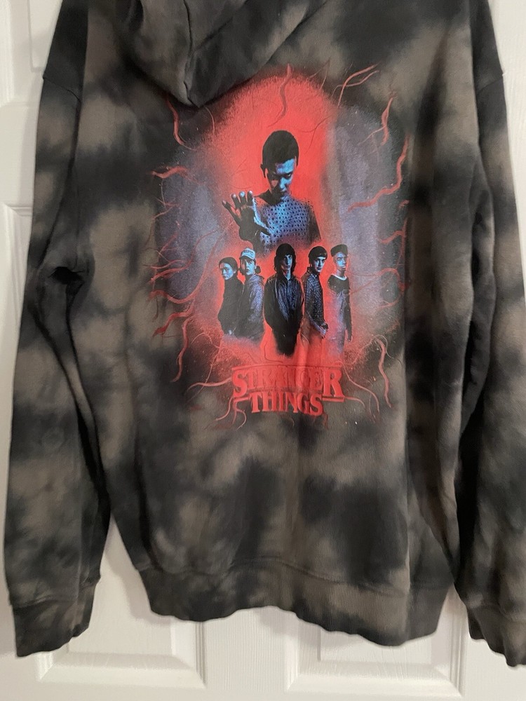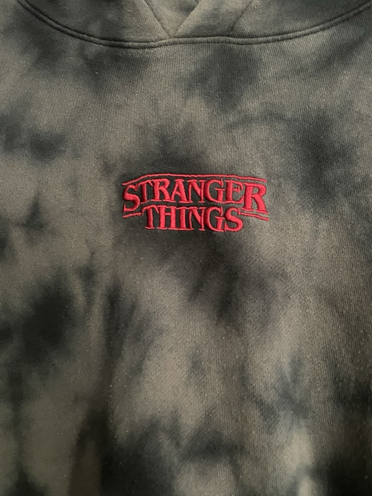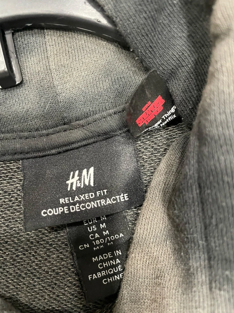Get ready to rock the H&M Stranger Things Hoodie in style! This unisex hoodie is perfect for any occasion, whether you're hitting the gym or just lounging around. With a chest size of see photos, this regular fit hoodie is made of a comfortable blend of polyester and cotton materials that are machine washable for easy care. Featuring a multicolor tie-dye design with the H&M logo accents, this pullover hoodie is a must-have for any fan of the popular TV show. The long sleeve hoodie comes in size medium and is perfect for both men and women. Don't miss out on this amazing piece from H&M! READ, has a little piling. Can’t see in photos.