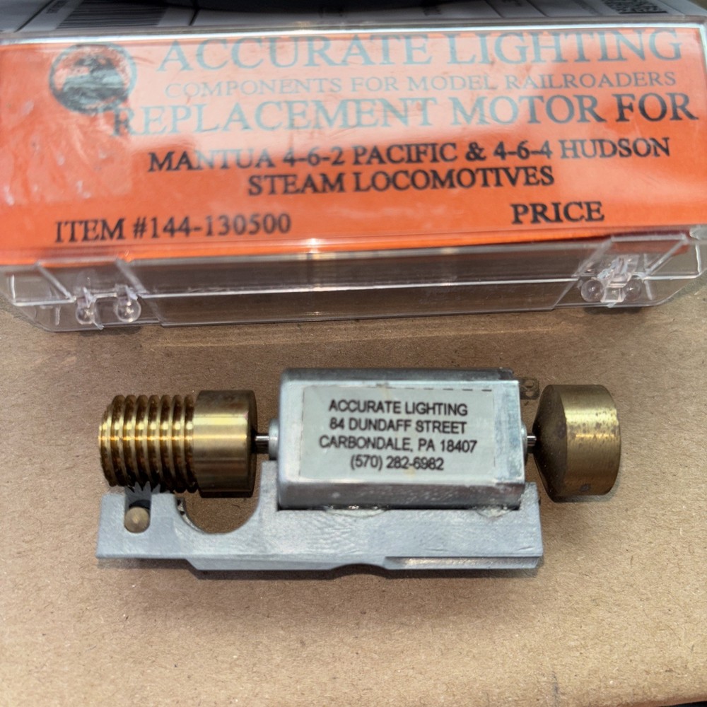 Listed for your consideration is an accurate lighting, helix humper can motor with brass flywheels. it is a replacement for the motor that Mantua and Tyco used on their larger steam locomotives. This motor bench tested perfectly. It is in new condition. Depending on which boiler that you are using, alittle of it on the inside may have to be shaved to accommodate the flywheel. Please view all pictures and feel free to ask questions. Pacific 4-6-2 Mikado 2-8-2 Hudson 4-6-4 Decapod 2-10-0 Berkshire 2-8-4