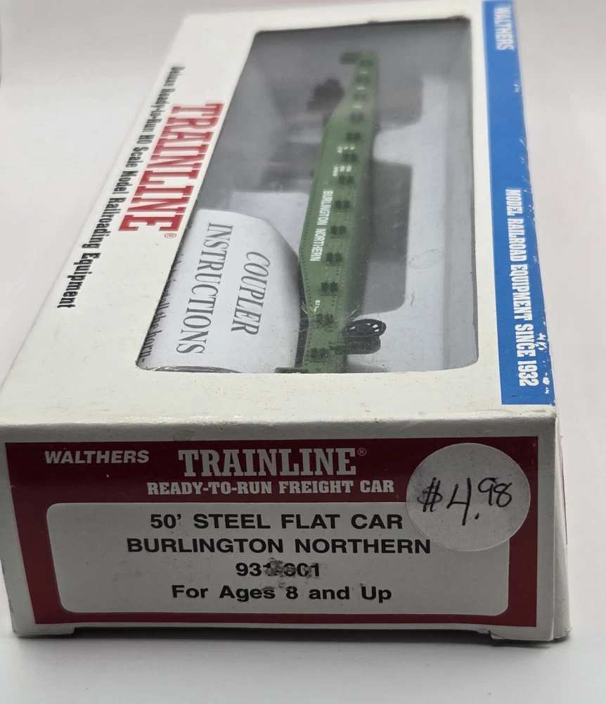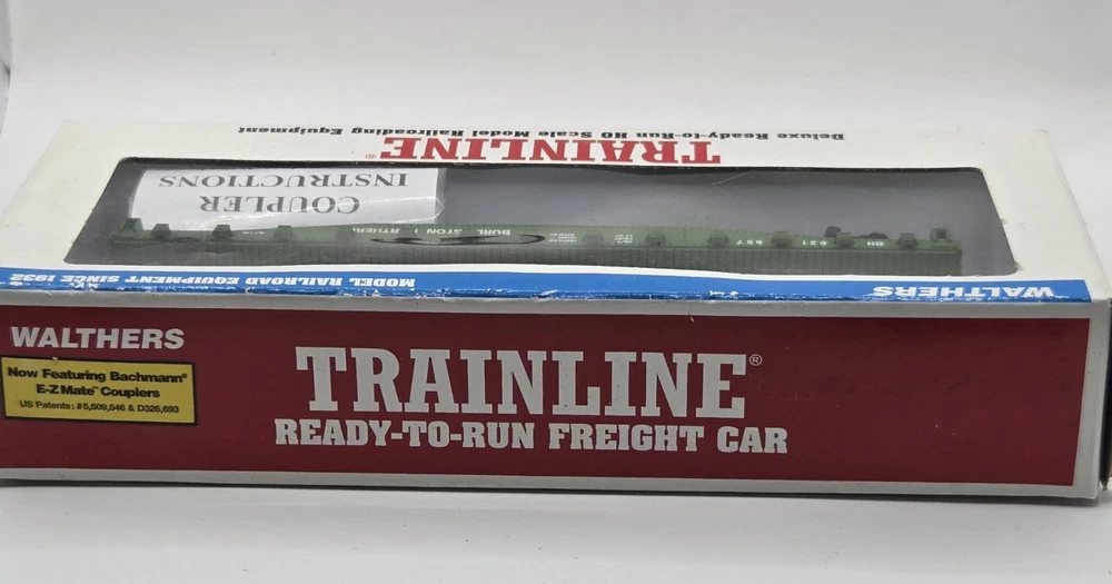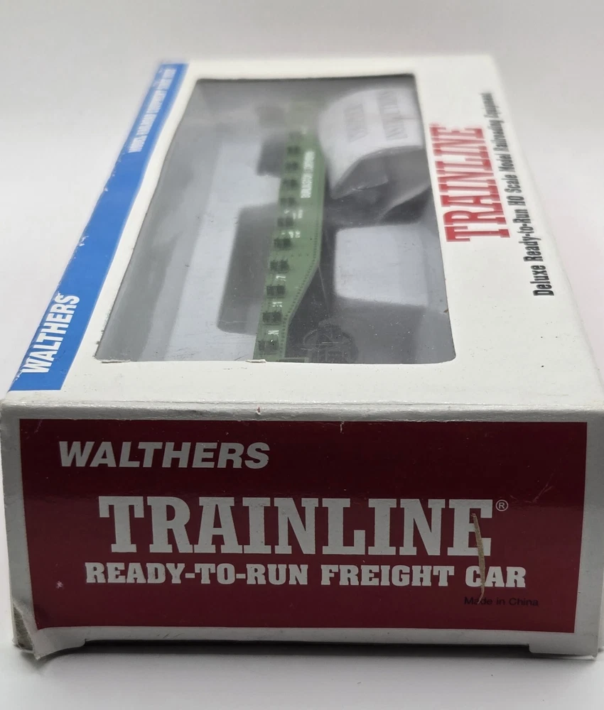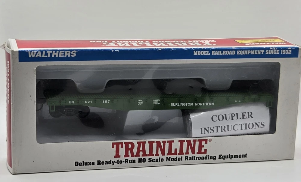 This HO Scale Walthers flat car is a must-have for any model railroad enthusiast. With its vibrant Burlington Northern green color and detailed painted design, it's sure to be a standout addition to your collection. Made of high-quality plastic and assembled to perfection, this pre-built train set is ready to go right out of the box. Featuring a two-rail system and analog control, this vintage flat car is a replica of a railroad franchise from the 1970s. It's perfect for anyone who loves transportation themes and wants to add some realism to their model train setup. At 1:87 scale, this flat car is a great addition to any HO Scale collection.