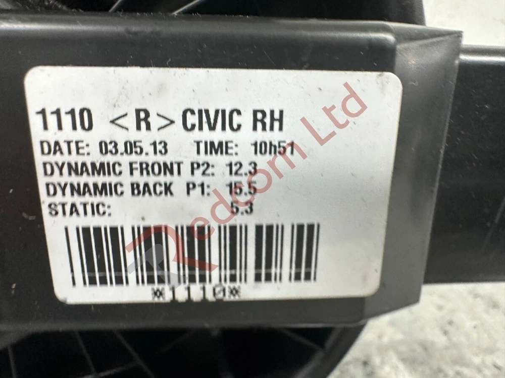 HONDA CIVIC FK 2012-2015 Heater Blower Motor Fan Mon-Fri: 8am-5pm | Sat: 8am-3pm | Sun: Closed STORE ABOUT CONTACT FEEDBACK HONDA CIVIC FK 2012-2015 Heater Blower Motor Fan Manufacturer Part Number: Not Available SKU Code: 104690 Part Number: 98814 Grade: B Stock Notes: 1110 CIVIC RH DATE: 03.05.13 TIME: 10h51 DYNAMIC FRONT P2: 12.3 DYNAMIC BACK P1: 15.5 STATIC: 5.3 *1110* 1110 < R > CIVIC RH DATE : 03.05.13 TIME : 10h51 DYNAMIC FRONT P2 : 12.3 DYNAMIC BACK P1 : 15.5 STATIC : 5.3 * 1110 * Please note that goods CANNOT be held; goods aren't confirmed until payment has been completed This Part's Donor Vehicle Vehicle/Model: HONDA Civic I-dtec Se-t Bodywork Colour: WHITE Interior Trim Colour: Not Available Interior Fabric Colour: Not Available Manufactured Year: 2013 More From This Vehicle DonorVehicle:6673ID More From Similar Vehicles SimilarVehicle:32390NUM Information & Compatability Compatibility is provided on listings to give an indication of some of the cars this part will fit. However, it may not fit your car due to the many differences with specification and changes on model years. Please take eBay's compatibility as a guide. The best and the easiest way to quickly check if the part is right for you is to compare part numbers. We are experts; so, if in doubt please call or message us and our technical team will be happy to advise. Please be aware that our products are sourced from recycled, used cars. The parts are fully functional, tested and have been removed from UK spec, right hand drive vehicles unless otherwise described. However, please note that you can expect general wear and tear corresponding to normal usage for a car of that year and mileage. Any significant damage or defects will be as listed in the item condition. All mechanical items sold from our site for £5 or more benefits from an automatic 14 day REPLACEMENT guarantee. Should any mechanical item with a value over £5 prove defective within 14 days of purchase please contact us and we will arrange for a suitable replacement to be dispatched to you. All items shipped out are security marked - any security marks showing evidence of the item being tampered with, (especially electrical items), will not be refunded or replaced. All engines and gearboxes are tested before removal from the doner vehicle unless otherwise stated. We take every effort to ensure accuracy in our listings but we can offer no guarantee of colour code being available and if it will be a 100% match to your vehicle due to fade and wear and tear. Coloured body panels should be assumed that a repaint will be required. Customers should note that all items sold with a warranty are engraved & marked with security paint. It is in your interest not to interfere with these markings as signs of tampering will void your warranty guarantee. Find Us For any help or advice with this part please get in touch. We are here to help. Please find us on Google Redcorn Ltd . Office Opening Times: Mon-Fri: 8am-5pm, Sat: 8am-3pm, Sun: Closed. eBay Messages will be replied to within business hours. Collection is welcome. Brantwood Rd, London, N17 0DX Redcorn Thank you for choosing Redcorn Ltd for your used car parts. We are salvage car specialists and provide the market with excellent quality used car parts online direct to you. If you require a part for this car which is not listed on our shop please send us a message with your requirements, we will be able to source the part and provide a new listing for you. Huge Range We recycle over 100,000 vehicles per year. After Sale Support We pride ourselves on our aftercare; just contact us for help. Massive Range of Stock We keep a huge range of stock in our purpose built facility. Money Back Guarantee You can get a full refund if you return the goods within 30 days. CONTACT DETAILS Address: Brantwood Rd, London, N17 0DX Phone: 020 8880 9555 QUICK LINKS Our Store About Us Contact Us Feedback REDCORN LTD We have thousands of parts in stock, with new items arriving weekly. Everything you see on our website is in stock ready for immediate dispatch. © Copyright 2024. Redcorn LTD. All Rights Reserved. Powered By Eladene Systems
