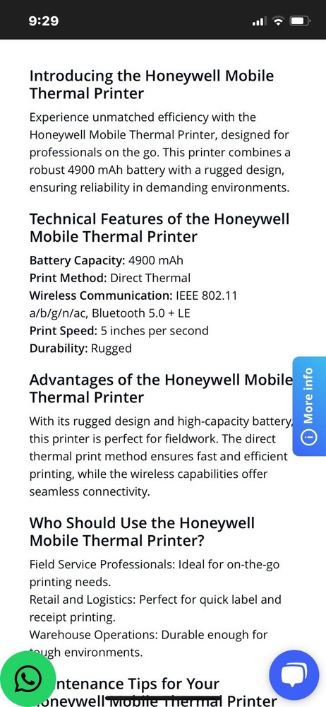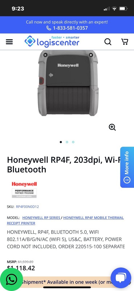 The Honeywell RP4B Mobile Bluetooth Thermal Label Receipt Printer RP4A00N0B02 Y1-9 is a portable printing device designed for use with smartphones and tablets. With its Bluetooth connectivity, users can easily print high-quality labels and receipts from their mobile devices. The thermal technology allows for efficient and environmentally-friendly printing, making it a convenient and reliable choice for on-the-go businesses and individuals in need of a compact printing solution.