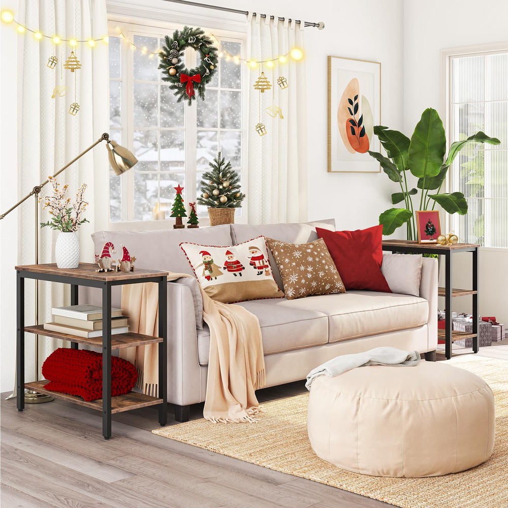 This stylish HOOBRO end table is a perfect blend of rustic charm and modern functionality. The rich brown wooden shelves paired with a sleek black metal frame make it a gorgeous addition to any room. With three spacious tiers, it offers plenty of storage for books, decor, or daily essentials. Compact yet sturdy, it works great as a side table, nightstand, or even a small coffee table. Love how versatile and eye-catching it is—definitely a must-have!