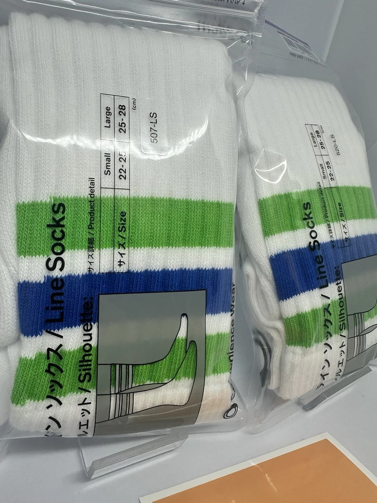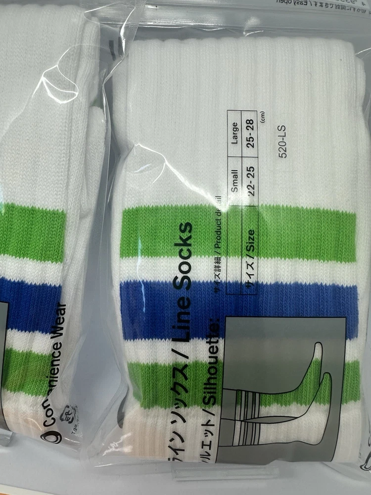 HOT ITEM! Konbini Original Family Mart Color Line Socks Convenience White Limited 2 pairs set About This Items These socks are exclusive to FamilyMart and are extremely popular on social media. They're also a popular souvenir for tourists visiting Japan. Take this opportunity to try them out! Family Mart Line socks Blue and Light green Line size: 25-28cm(JPN) ,7-10(US Mens), 8-11(US Womens) Line socks for both men and women. The soles are thick pile-knit with the brand name printed on them. Antimicrobial and deodorant processing prevents odor. Wear as high socks. Wear them loose and slouchy. Condition NEW Shipping We always send the item with a tracking number. So please place an order without any concern on delivery. You can always track the delivery status. Shipping is only available to the address registered in eBay. If you want us to send another address, please change your address on eBay and then place an order. Shipping is available from Monday to Friday. Weekends are not available because freight (shipping) companies are closed. About Importer's Obligation Import duties, taxes, and charges are not included in the item price or shipping cost. These charges are the buyer's responsibility. Please check with your country's customs office to determine what these additional costs will be prior to bidding or buying. Thank you for your understanding.