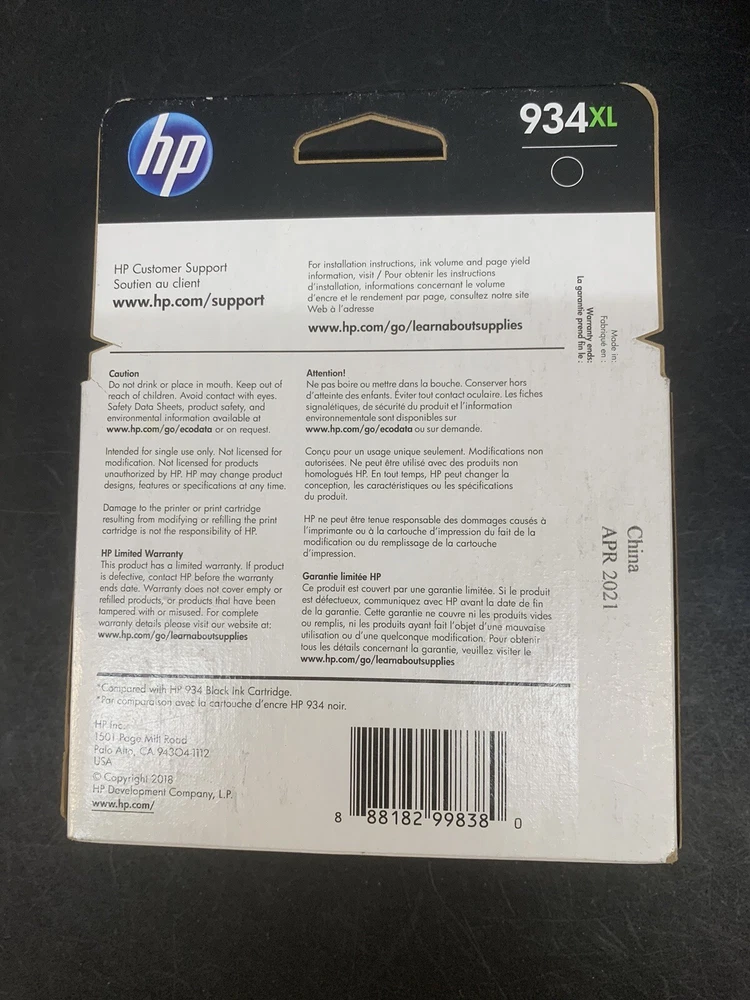 UPC:888182998380Expiration Date:April 2021Compatible Model:For HP Officejet 6812, HP Officejet Pro 6230Type:Genuine/OriginalModel:HP 934XLPrint Technology:InkjetCompatible Brand:For HPMPN:C2P23ANColor:BlackBrand:HPgtin13:888182998380Country/Region of Manufacture:Unknown
