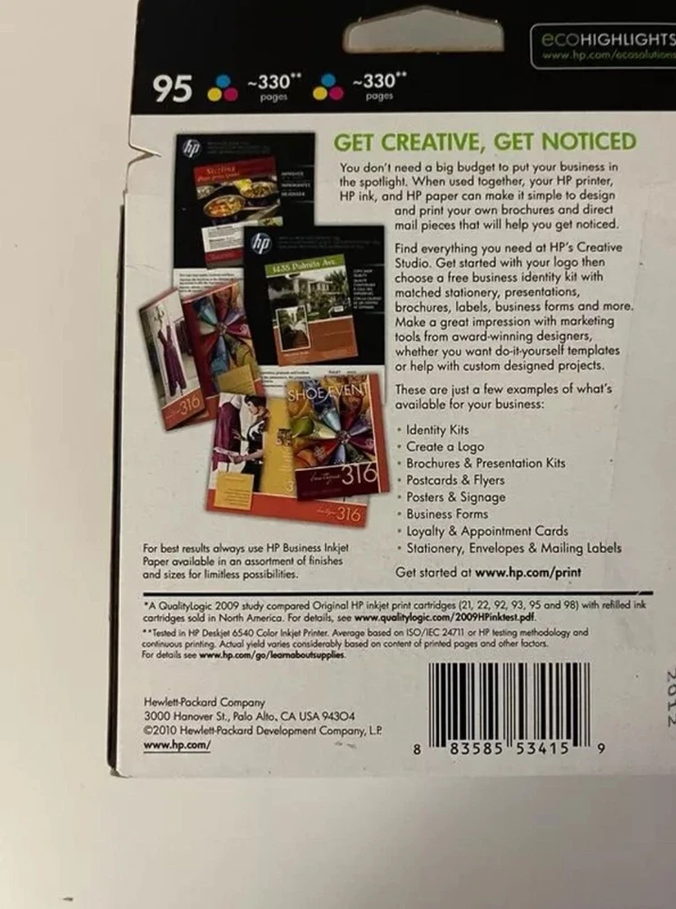 HP 95 Tri-Color Ink Cartridge Twin Pack - Brand New Sealed Oem Blue Yellow Cyan