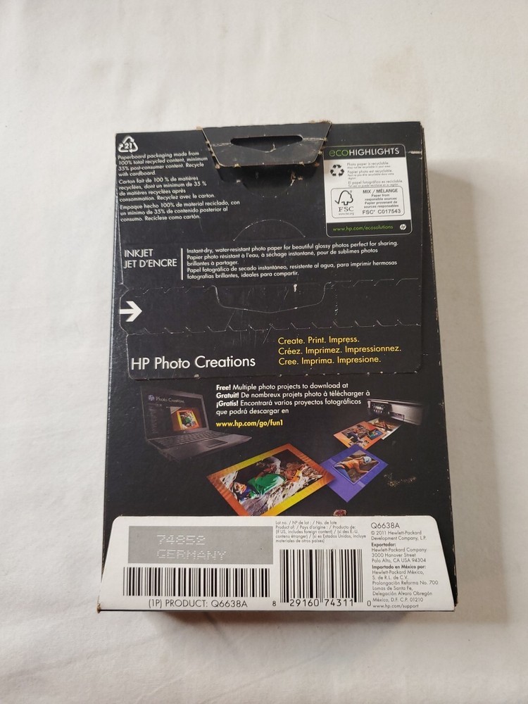 THANK YOU FOR VISITING OUR STORE. WE SHIP 6 DAYS A WEEK (UNLESS THERE IS A FEDERAL HOLIDAY). MOST ITEMS WILL SHIP IN A STURDY BOX AS NEEDED. PLEASE FEEL FREE TO REACH OUT IF YOU HAVE ANY QUESTIONS. WE WILL COMBINE SHIPPING WHEN AVAILABLE. Get professional-quality prints with HP Advanced Photo Paper. This glossy paper is specially designed to produce vibrant colors and sharp details. It is compatible with HP printers and ideal for printing photos at home. Each pack contains 100 sheets of 4"x6" paper that weigh 1.0lbs. This photo paper is brand new and sealed, ensuring that you get the best quality. Use this HP Advanced Photo Paper for all your printing needs. Its white color and glossy finish add a professional touch to your photos, making them look stunning. The paper is designed for inkjet printers and is perfect for producing high-quality prints at home. It is also easy to handle and quick-drying, which means you can handle and share your photos right away.