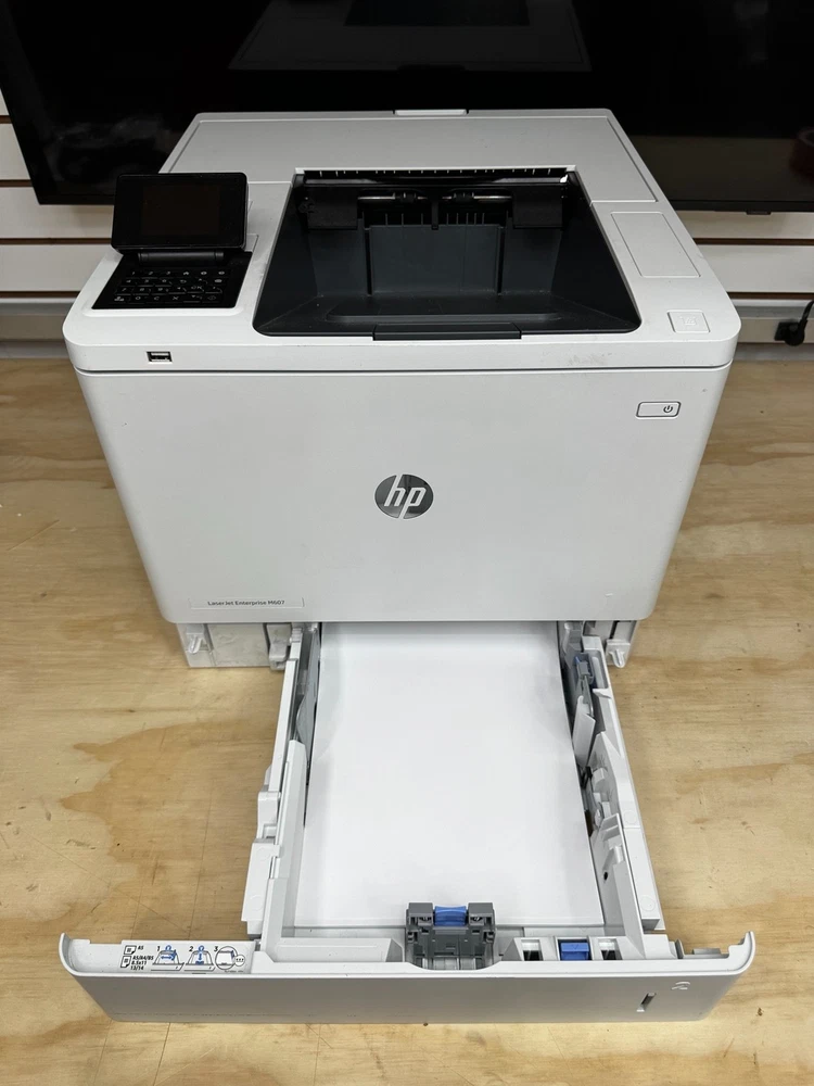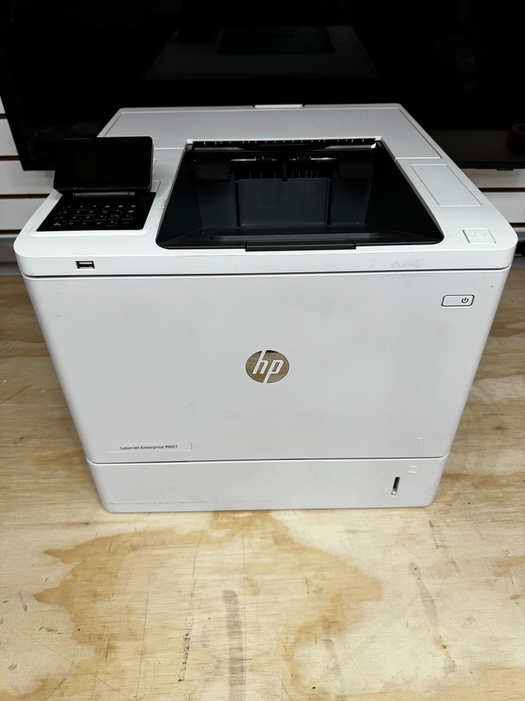Up for sale is an HP LaserJet Enterprise M607 monochrome laser printer in excellent working condition. This is a high-performance business-class printer designed for fast, high-volume printing with professional reliability. The printer has been fully tested and is working properly. It produces clean, sharp prints and is ideal for office or heavy-duty home use. Key Features: High-speed monochrome (black & white) laser printing Enterprise-grade performance and reliability Automatic duplex (double-sided) printing Network ready (Ethernet) Touchscreen control panel Large paper capacity Condition Details: Fully tested and working great Clean overall with light cosmetic wear from normal use No major damage or cracks See photos for exact condition Toner Status: Black toner approximately 20% remaining (Shown in included supplies status page) What’s Included: HP LaserJet Enterprise M607 Printer Power Cable USB Cable Printed usage & supplies pages Shipping: Ships within 1 business day Securely packaged for safe delivery Local pickup available (if applicable)