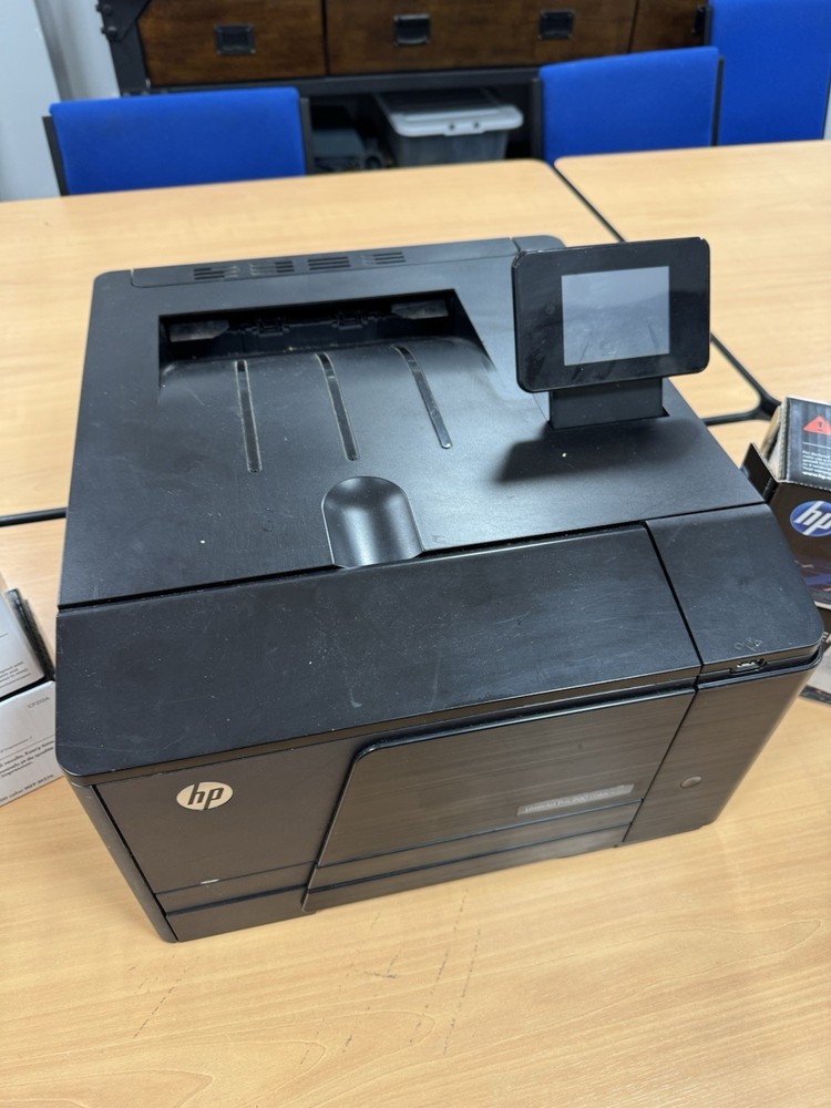 The HP LaserJet Pro 200 M251nw Printer is an all-in-one printer that uses laser technology for high-quality printing. This printer from HP's LaserJet Pro product line supports paper sizes such as A5, A4, and A6. Additionally, it comes with 4 colour toner cartridges to ensure vibrant and professional-looking prints. Ideal for office or home use, this printer offers convenience and efficiency in one compact device. Colour toners are brand new and over £100 each. Printer is well used, former shop printer for a retail store. Still in good condition.