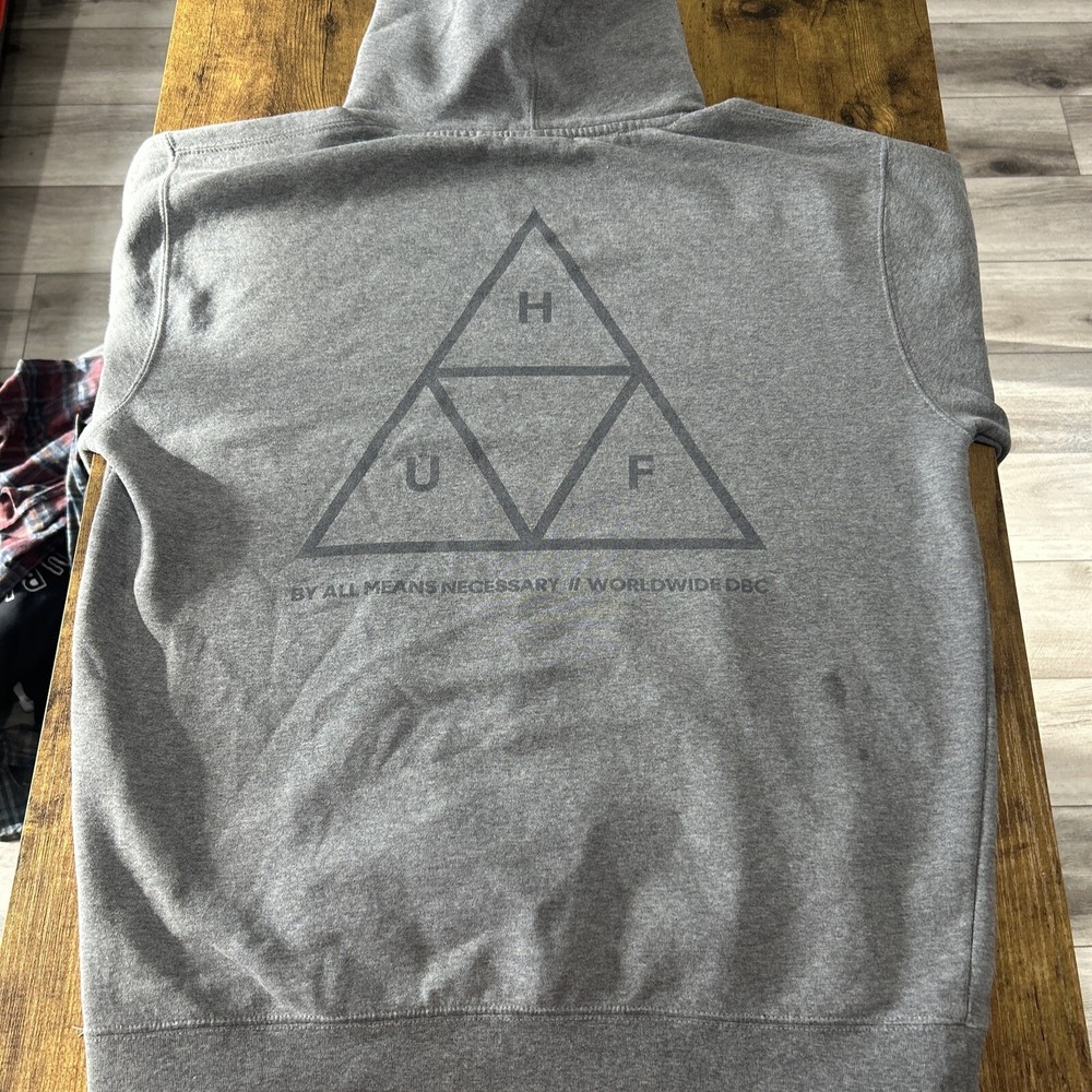 HUF Long Sleeve Pullover Hoodie SIZE M- Medium - GRAY - 2 Sided
