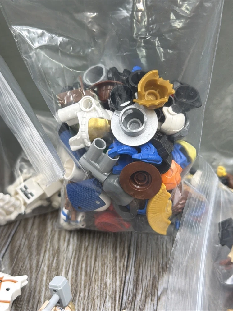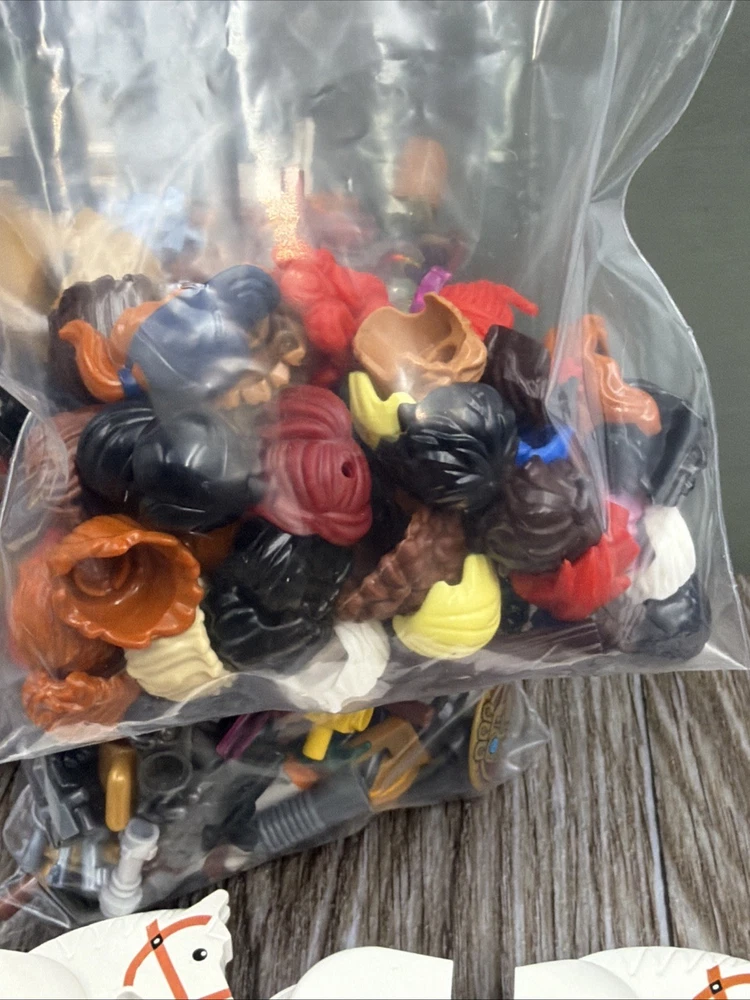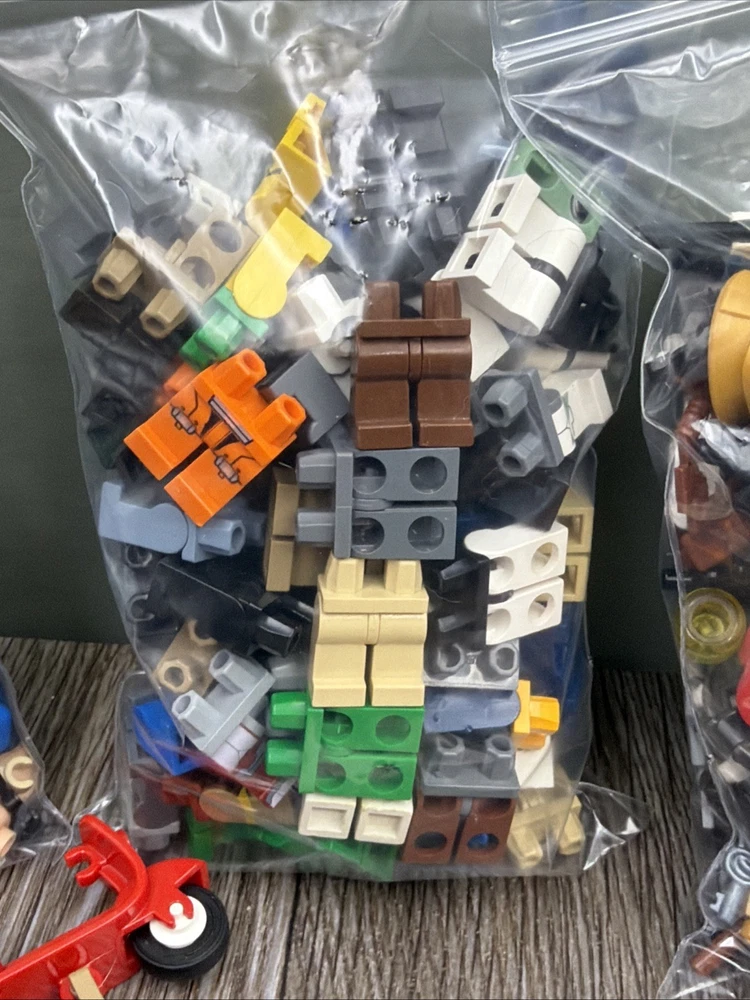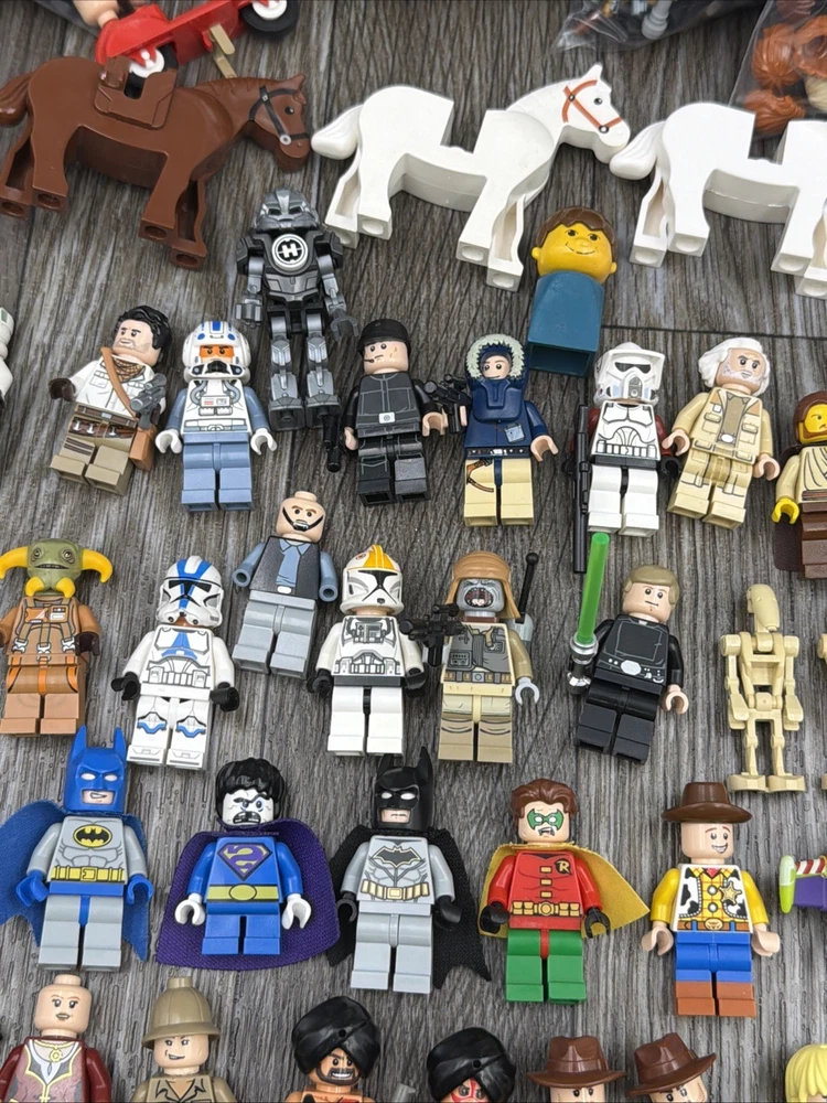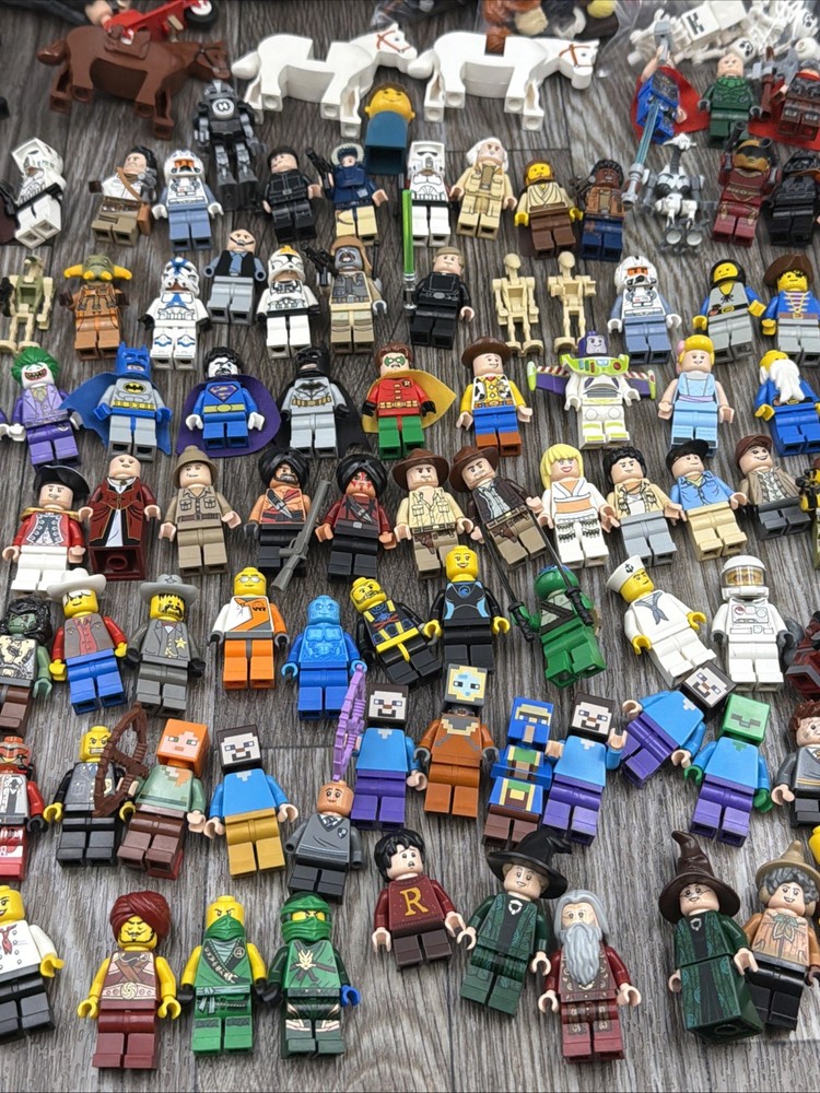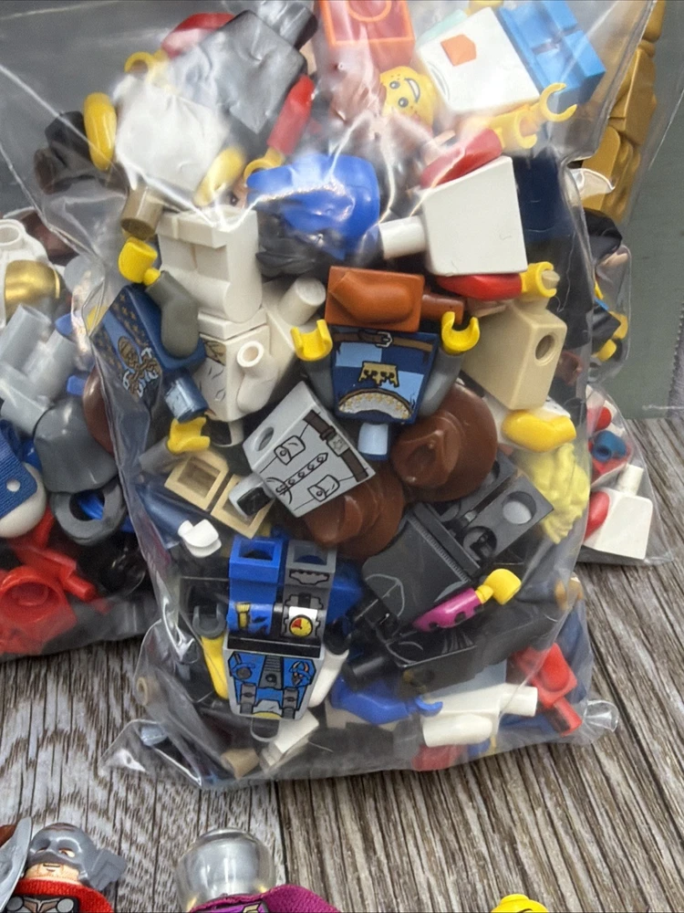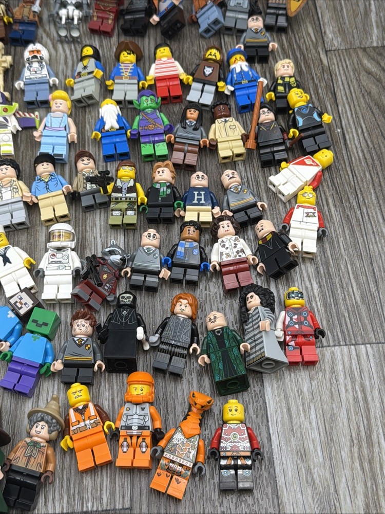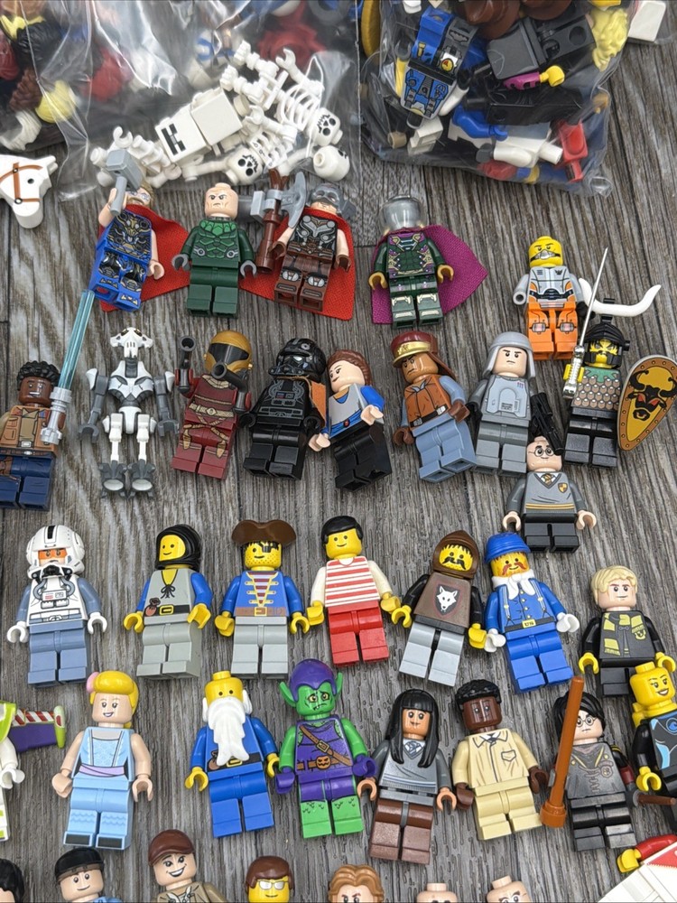 All are in good used condition some complete a lot of torsos legs hair helmets arms and accessories in the bags and tub. Some vintage Star Wars Indiana jones Harry Potter etc