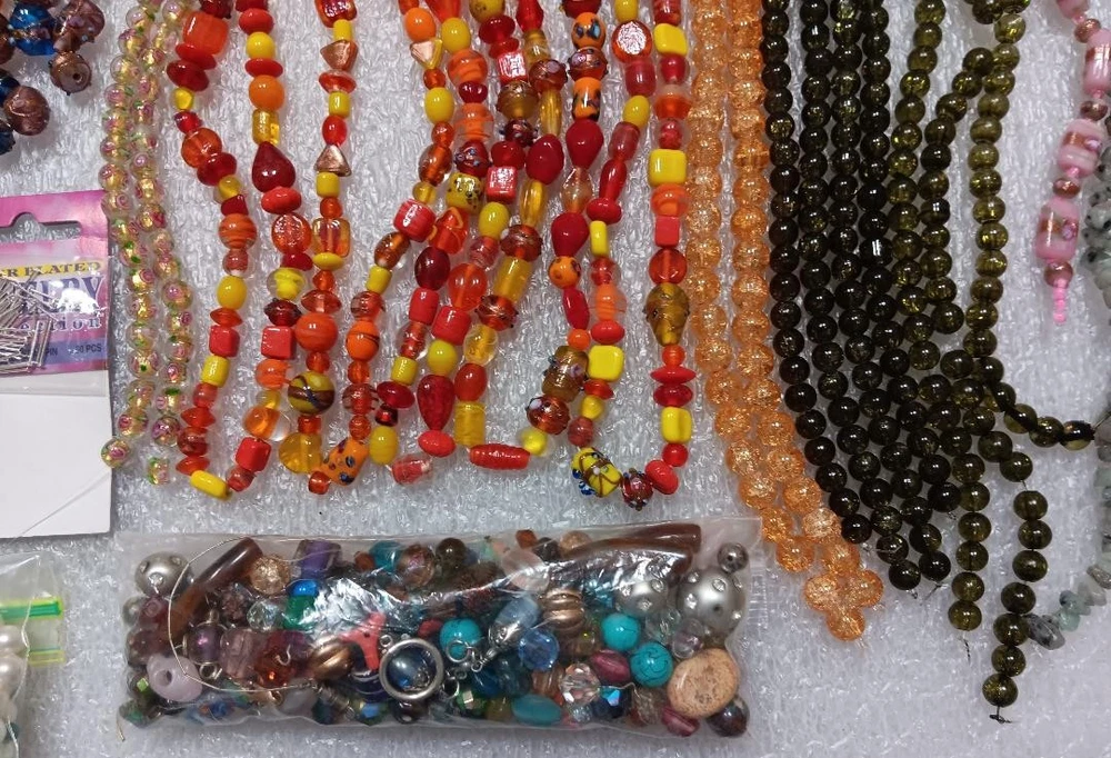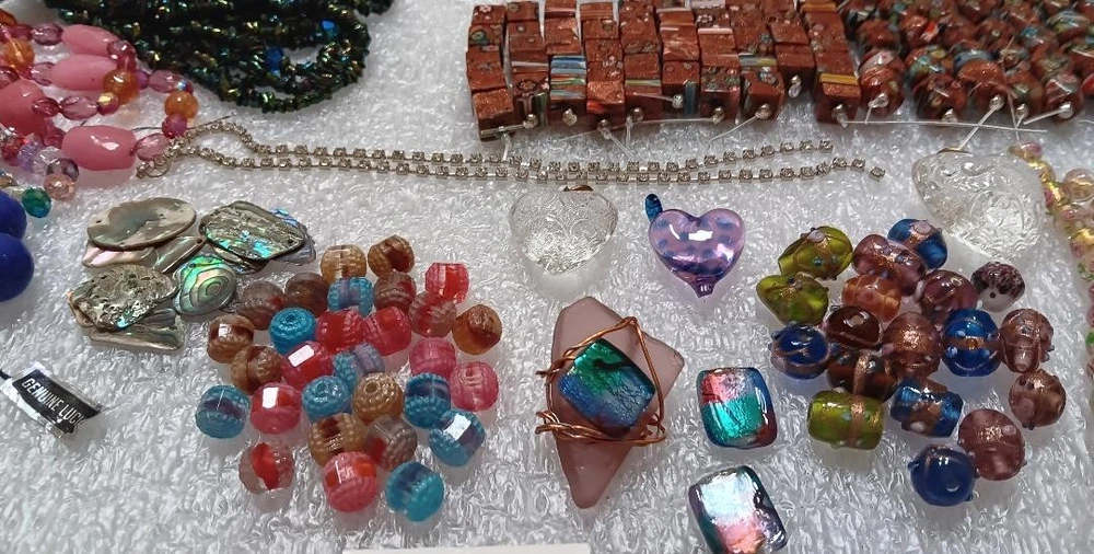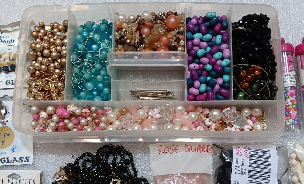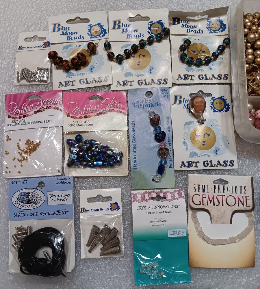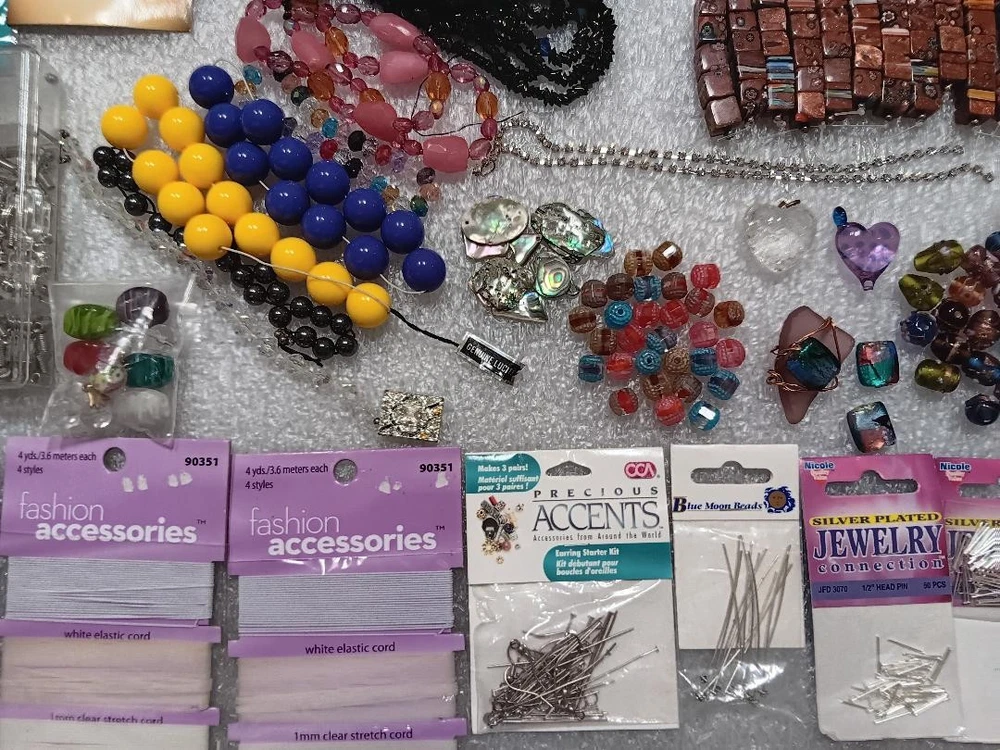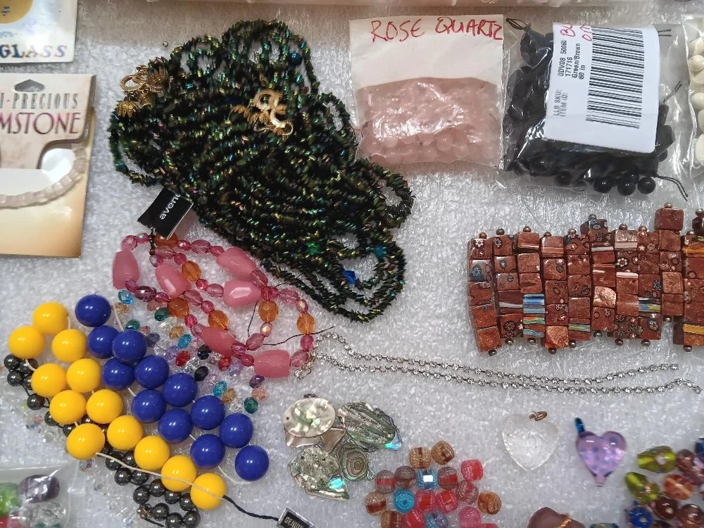 HUGE LOT of Gemstone, Glass Beads & Jewelry Making Supplies - 11+ pounds total! An impressive, heavyweight bead lot packed with high-quality gemstones, glass, pearl, and metal beads—perfect for jewelry designers, resellers, or serious bead collectors. This is a diverse, high-value assortment with many strands and statement-size beads. Beads include Goldstone, Lampwork, Art Glass. Acrylic, Crystal, Semi-Precious Gemstone, Glass, Lucite, Metal, Resin, Stone, Mixed Materials, Plastic...along with various jewelry findings. Beads will come shipped in the Martha Stewart Portable Storage Box as pictured. Findings don't fit in the box, so they will ship in a different package with the Storage Box. Excellent condition. Just as pictured.