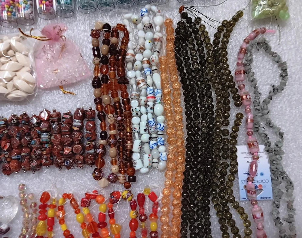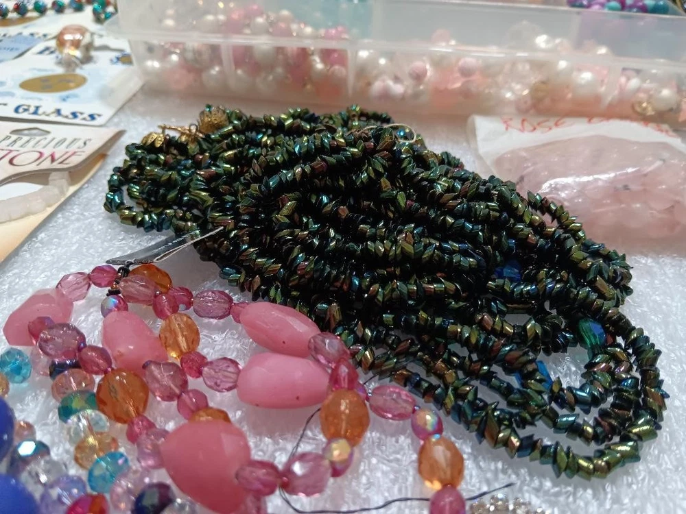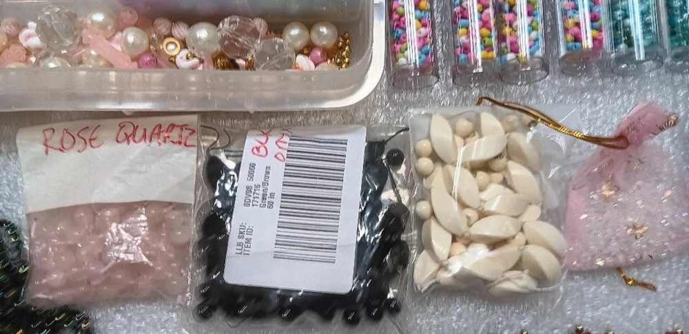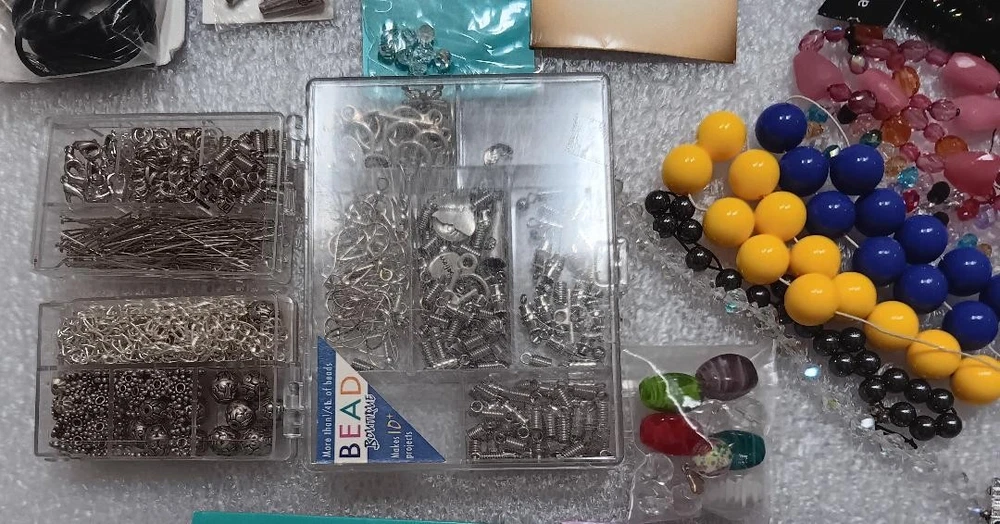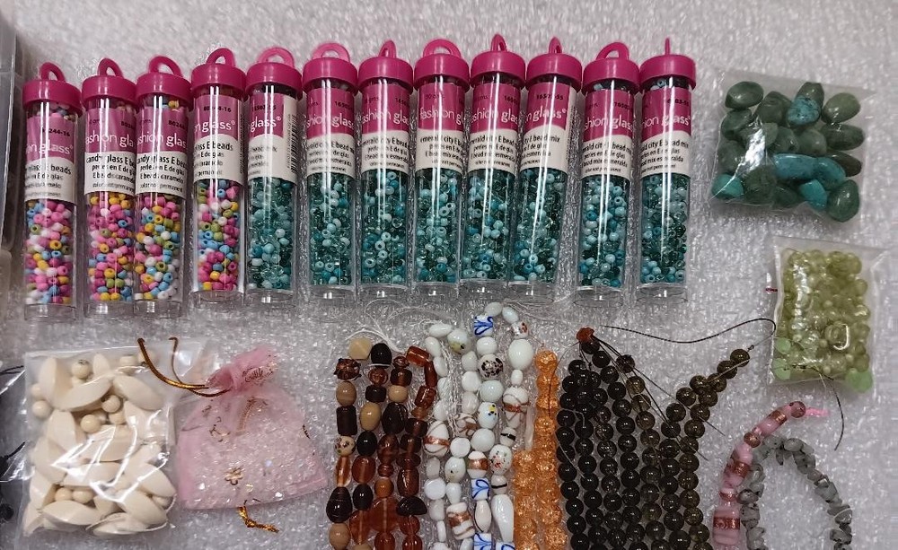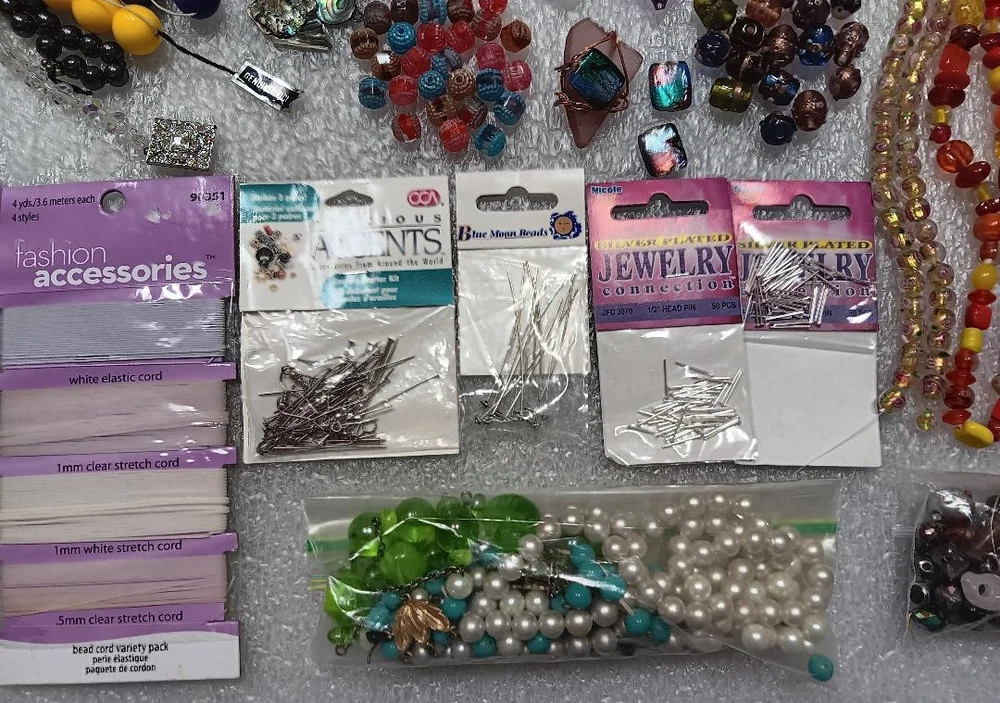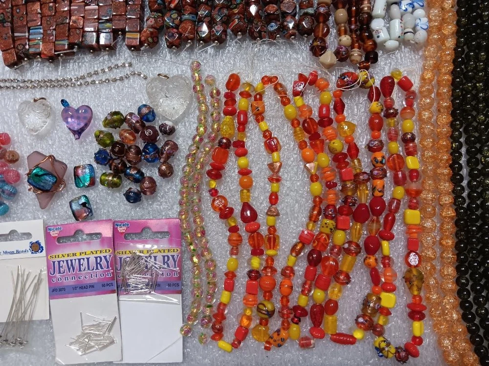 HUGE LOT of Gemstone, Glass Beads & Jewelry Making Supplies - 11+ pounds total! An impressive, heavyweight bead lot packed with high-quality gemstones, glass, pearl, and metal beads—perfect for jewelry designers, resellers, or serious bead collectors. This is a diverse, high-value assortment with many strands and statement-size beads. Beads include Goldstone, Lampwork, Art Glass. Acrylic, Crystal, Semi-Precious Gemstone, Glass, Lucite, Metal, Resin, Stone, Mixed Materials, Plastic...along with various jewelry findings. Beads will come shipped in the Martha Stewart Portable Storage Box as pictured. Findings don't fit in the box, so they will ship in a different package with the Storage Box. Excellent condition. Just as pictured.