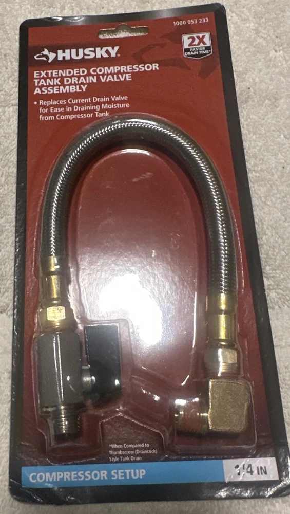 This is a HUSKY 1000 053 233 1/4" Extended Compressor Tank Drain Valve Assembly. It is a high-quality and durable tool designed for easy and efficient draining of compressor tanks. The brand of this tool is HUSKY TOOLS, and it is a perfect addition to any toolbox. The type of this tool is a DRAIN VALVE ASSEMBLY, and it is a must-have for any mechanic or DIY enthusiast. The model of this tool is 1000 053 233, and it is designed for long-lasting use. At Manasota Liquidation, we prioritize your satisfaction and peace of mind with a 30-day return policy. We take great care in packaging your products, utilizing bubble wrap to ensure they arrive in perfect condition, just as shown in the pictures. To further enhance your shopping experience, we provide $100 insurance on any damage that may occur during shipping. In the unlikely event that your order is damaged, please contact our customer service team, and we will assist you in resolving the issue. Please note that a restocking fee of 20% will be applied to all eligible returns. This fee will be deducted from the refund amount issued to the customer. Shop with confidence knowing that we prioritize the safe delivery of your order and offer insurance coverage for your protection.