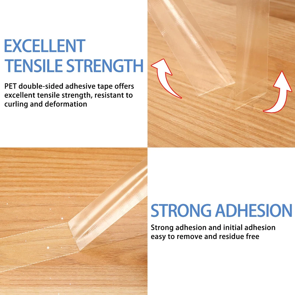 DOUBLE SIDED TAPE DATA: The 9495LE from the 300LSE series, an ultra-thin adhesive tape measuring just 0.17mm in thickness, 10mm in width, and a length of 45ft (13.75m). This PET tape offers long-term temperature resistance up to 90°C and short-term temperature resistance up to 149°C WIDELY USE: This heavy duty double sided tape tape with robust adhesion, perfect for a myriad of uses including scrapbooking, package wrapping, arts and crafts endeavors, picture hanging, as well as poster and LED light strip installations. It’s also particularly suited for DIY automotive decoration, prototype component fabrication, or electronic equipment repair MULTIPURPOSE STICKY MOUNTING TAPE: This mounting tape providing high bonding strength to most surface materials including plastic, metal, leather, rubber, glass, painted surfaces, etc. and it’s easy to remove without leaving any residue or damage HOW TO USE THE TAPE: Before using this clear double sided tape, ensure that the surface is clean, dry, and no oil or dust. Cut the desired length of tape and gently press it onto the surfaces to be bonded, ensuring full contact. Optimal bonding strength is achieved after approximately 24 hours (bonding strength reaches 90% after 24 hours) INVISIBLE TAPE: With transparent design, the tape leaves no visible traces when used, maintaining a clean and neat surface. It can be widely used in homes, classrooms, studios, and other settings.