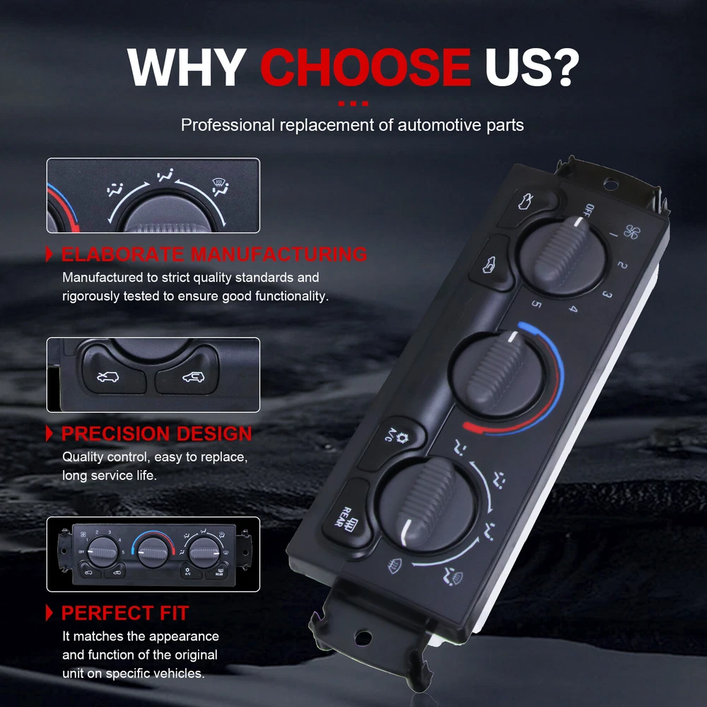 Store Categories Store Categories High Pressure Fuel Pump Liftgate Actuator Struts Oxygen Sensors Rear View Backup Camera Climate Control Panel Tire Press Monitoring System Master Power Window Switch Other Cowtotal Autoparts,Your Best Aftermarket DIY & DIFM Partner. Product Description Pa cka g e includes: 1 x Climate Control Module 1 x Removal Tool Set Fitme nt : (For Reference Only): Chevrolet Series: 1999-2002 Chevrolet Silverado 1500 2001-2002 Chevrolet Silverado 1500 HD 1999-2002 Chevrolet Silverado 2500 2001-2002 Chevrolet Silverado 2500 HD 2001-2002 Chevrolet Silverado 3500 2000-2002 Chevrolet Suburban 1500 2000-2002 Chevrolet Suburban 2500 2000-2002 Chevrolet Tahoe GMC Series: 1999-2002 GMC Sierra 1500 2001-2002 GMC Sierra 1500 HD 1999-2002 GMC Sierra 2500 2001-2002 GMC Sierra 2500 HD 2001-2002 GMC Sierra 3500 2000-2002 GMC Yukon 2000-2002 GMC Yukon XL 1500 Features: 100% Brand New. According to o riginal factory specifications, perfect match to original car . Made of high quality material. Parts are from certified professional factory. Specifications: Name: Climate Control Module Color: Black Condition: 100% Brand New Fitment Type: Direct Replacement OE Part Number: 599-266, 15-72528, 15-72717, 19244873, 1S10913, 2403-484609, 53-12325, BL122, HS394, SW8235, 15054697, 15753264, 19244873, 9361355 Note: Pleas e Check Carefully To Make Sure the OE Number And Picture are Exactly Listed Are The Same As Your Orignal One. If You are Not Sure Whether It Fits, Please send VIN number to us. No Instruction Included, professional installation is highly recommended . Payment Policy Shipping Policy Returns Policy Warranty Payment Policy 1. We accept Paypal, Credit Card, Veno,Goggle Pay,American Express,Discover, Direct Debit, VISA, eCheck, or othe r methods, please kindly check Paypal for more information. 2. For multiple purchases, please add items to your Ebay shopping cart and pay once for entire order. Shipping Policy 1. All items will be shipped to buyer's ebay address. 2. All items will be shipped within 24 working hours upon receipt of payment, and multiple items might be combined shipping. 3. In most cases, delivery takes around 3-7 business days, it's highly depended on the efficiency of the shpping carrier. If your item doesn't arrive on time, please contact us immediately for further assistance. Please note there is no local pickup service available. 4. We do appreciate your purchase here. If you are astisfied with the item as well as our service, please kindly leave us a Positive Feedback to help develop our bu siness. Th ank you in advance. Returns Policy We have a friendly and dedicated customer support teams to handle any problems you come up with our products. Please contact us first via email or message for replacement, refund or technical problem caused by any reason. Warranty 30 Days Free Return and Money Back Guarantee. If you are not satisfied with your purchase, you can return the item with original packaging back to us for full refund, not any re-stock fee. The return cost should be paid by buyer. 5 Year Unl imited Mileage Quality Guarantee If you receive any w rong items, or damage during the transportation or defect items, we will accept the return and pay the return freight. Please noted that the return cost should be prepaid by buyer, we will issue the refund of return cost to buyer after inspecting the faulty item. The full refund or replacement will be available for all faulty items, including the original shipping cost. Please kindly contact us b efore return, our representatives will send you the detailed return instruction. The guarantee will be only for the cost of the item, we will not responsible for installation or other fees like labor expenses, towing expenses, additional repair expenses or other related expenses. Copyright © 2023 Dianxiaomi