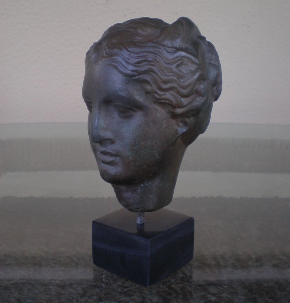 HYGIEIA GODDESS OF HEALTH - BUST ON MARBLE BASE Hygieia was the goddess of health, healing and wellbeing. She was the grand-daughter of Apollo. Hygieia's name gives us our word "hygiene". The original marble head, currently in the National Museum in Athens, was found in the Temple of Apollo at Tegea and is probably the work of the 4th century sculptor Skopas. This bust is made of magnesite material with bronze effect , giving the piece a classic appearance. It was made in Greece, stands 5.1 inches high 2.7 inches width and weighs approximately 500 g. Bust Details: Condition: New, Handmade in Greece. Material: Magnesite with bronze color effect Base Material: Marble Dimensions: 5.1"(Height) x 2.7"(Width) Weight: 500 g ******** Check Out Our other items For Sale! Buy more items & SAVE ON SHIPPING! Store Policies: Payment We accept Paypal and we'll ship worldwide! Shipping We Offer Shipping Discounts for multiple purchase. For the second item we offer 20% discount. For major orders we can give you additional discount. Legal notice to all international order: We are not responsible for customs duties and taxes that may be charged on international orders. Please email us for more information.(011100103801) Customer Service & Return Policies All items are returnable within 14 days of the shipping date for a full money back guarantee (excluding shipping charges). If you are not satisfied with an item, you may exchange it or receive a full refund if it is returned in its original condition and packaging. In the event that the item is unavailable for replacement, a refund will be processed. If we feel that the return policy is being abused we reserve the right to refuse any exchange, credit or refund. Refunds will be processed via the method used for payment unless another method is requested. 14 Days 100% Money Back Guarantee If you are not satisfied with the product. No questions asked! We'll be very glad if you Visit our Store and have a look of our other items For Sale!