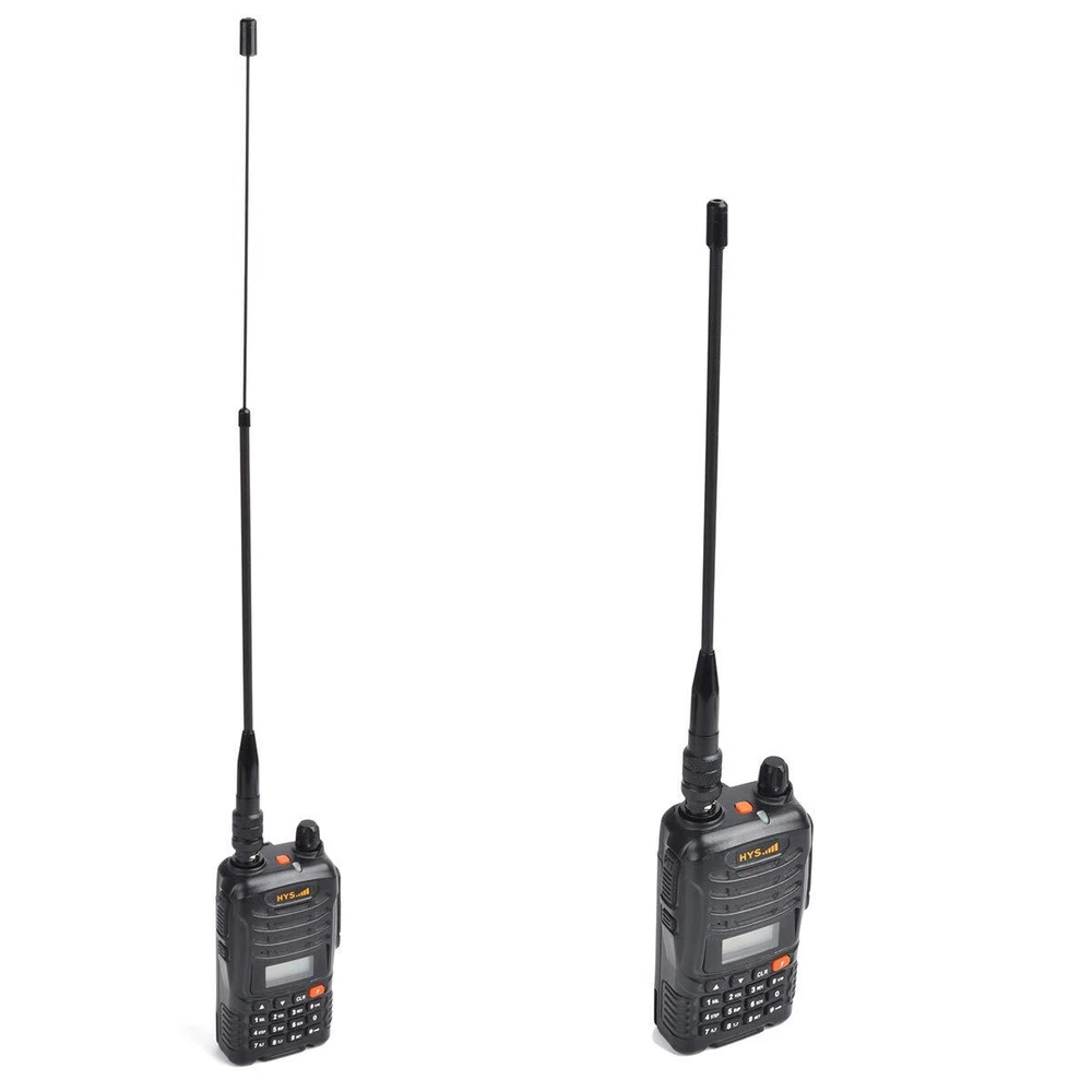 Frequency: 144/430MHz;Gain: 2.15dBi/3.0dBi Max power: 10;VSWR: less than 1.5 Length Approx: 20.5cm(8in)-35.5cm(14in), different antenna length, the antenna effect is different. Connector:BNC ; Compatible with V8 V80 V80E V82 V85 F3S and other suitable for BNC Handheld Radios HYS antennas are individually Tested to ensure proper compatibility with your Radio and Frequencies! HYS antennas are dependable, accurate, reliable and affordable.