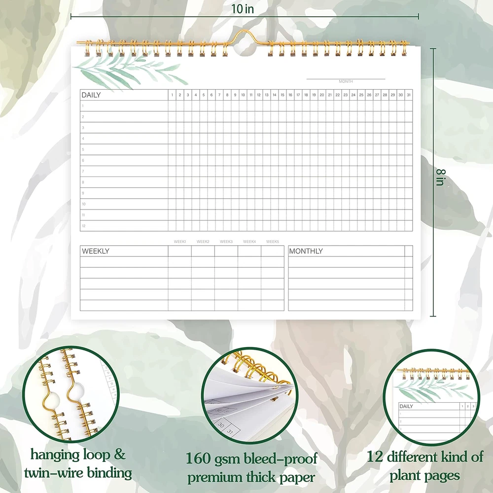 Store New Arrivals Add to Favorite View Feedback Contact Fast deliveries to the customer's home Quality customer service John Make the customers happy! Habit Tracker Calendar- 12 Months Undated Daily Weekly & Monthly Period Habit Tracker Journal, Greenery Floral, Spiral Binding with Writable Goals Habits Track and Self Care Office Supplies. 8"X10" Description BUILD THE LIFE YOU’VE ALWAYS WANTED – Never underestimate the power of habits. They are the building blocks of our lives. Adopting new habits, and breaking old ones, is a challenging process. habit tracker journal helps you stay motivated and disciplined by forming habits that will last a lifetime. Get inspired by your daily progress and become your best self! PREMIUM PAPER & EASY TO USE - This habit planner measures 10 inches wide by 8 inches long and is made of thick 120gsm premium paper that will neither bleed through nor deteriorate with everyday use. The monthly habit tracker has a sturdy hanging hole so that you can hang it anywhere and easily see it every day. BECOME HEALTHIER, HAPPIER & MORE PRODUCTIVE – With this habit tracker planner, you will be able to focus on adopting new habits in all vital areas of your life, improve your mental and physical wellbeing, relationships, and work-life balance. The weekly habit tracker will also be an immense help if you want to take up new hobbies or learn new skills but can never find the time. VERSATILE DESIGN & SUITABLE SIZE - This habit tracker is with the size of 8" x 10" and is made from high-grade materials with premium paper which makes you easy to write on and won’t let ink bleed through. Also, this habit tracker calendar has sturdy twin-wire binding and hanging hole for easy usage. Whether you need a healthy habit journal, goal planner, sleep tracker or others - we’ve got you covered! WIDE APPLICATIONS FOR VARIOUS PLACES - Giving you goals that you can visually see and fill out the habit tracker calendar. You can draw, paint, or even use habit tracker stickers on it and make it your very own and unique piece of art on your wall or desk. For this habit tracker, you can hang it completely flat on the wall or desk, or else show one side. Product Description Master the art of building good habits------Habit Tracker Calendar Practical function of the Habit Tracker ! This habit tracker features spaces for daily habits, weekly habits, monthly habits & undated space and other spaces for tracking. You can draw, paint, or even use habit tracker stickers on it and make it your very own and unique piece of art on your wall or desk. Practical function of the Habit Tracker ! It's made of thick 120gsm premium paper that will neither bleed through nor deteriorate with everyday use. High-quality papers bring you a smooth writing experience. Practical function of the Habit Tracker ! Different color plants make your life more colorful and bringing you a different visual experience every month. Practical function of the Habit Tracker ! This habit tracker calendar has sturdy twin-wire binding and hanging hole for easy usage, Gold color twin-wire binding adds a chic feeling to your room WIDE APPLICATIONS PREMIUM THICK PAPER 12 DIFFERENT DESIGNS TWIN-WIRE BINDING AND HANGER 12 SHEETS DIFFERENT STYLES! AN EASY WAY TO BUILD HABITS Do you struggle to introduce new habits into your routine and actually stick to them? This Habit Calendar is an effective and easy-to-use tool for tracking and developing habits that last. This new Habit Calendar will help you take small daily steps to build lasting habits and routines and transform your life for the better. Sheet Size 8 x 10 Inches Calendar Type Non Dated Format Notebook Paper Size 8 x 10 Inches Color Greenery Binding Spiral-bound Cover Material Paper Material Paper Material Type Paper Target Audience Adult Item Dimensions L x W x Thickness 10"L x 8"W x 0.2"Th Year 2021 Recommended Uses For Product [{'Tracking habits'}, {'Personal development'}, {'Productivity'}, {'Goal setting'}] Model Year 2021 ABOUT US We offer the best prices around on high quality products. Our E-store includes media such as books, movies, music and games while offering electronics, toys, sporting apparel, clothing, tools, general home, garden items and more. SHIPPING We are always working hard to ensure your package arrives as soon as possible. Please understand that some factors like weather, high postal traffic, and the performance of shipping companies are outside of our control. We offer free shipping to the lower 48 states and ship within 2 business days of payment, usually sooner. We do not accept P.O. Boxes. Please provide a physical address. For shipping outside of the continental USA, we only use eBay's Global Shipping Program. The item is shipped to KY and then sent to the rest of the world. International customers are responsible for all duties and taxes. Continue to 'check out' to calculate costs for shipping the item to your country. Messages regarding eBay's Global Shipping Program MUST be directed at eBay EXCLUSIVELY. RETURNS We offer a 30-Day Return Policy on items in which you are not completely satisfied with. You have the option of a full-refund or an exchange of the item. No returns are available on items shipped outside of the USA PAYMENT We accept PayPal. CONTACT US This page content is yet to come Please ad us to your favorite seller and visit again later Thank You CUSTOMER SATISFACTION We try our very best to make sure every customer is completely satisfied. If there's a problem, message us! We're happy to help. WE ACCEPT
