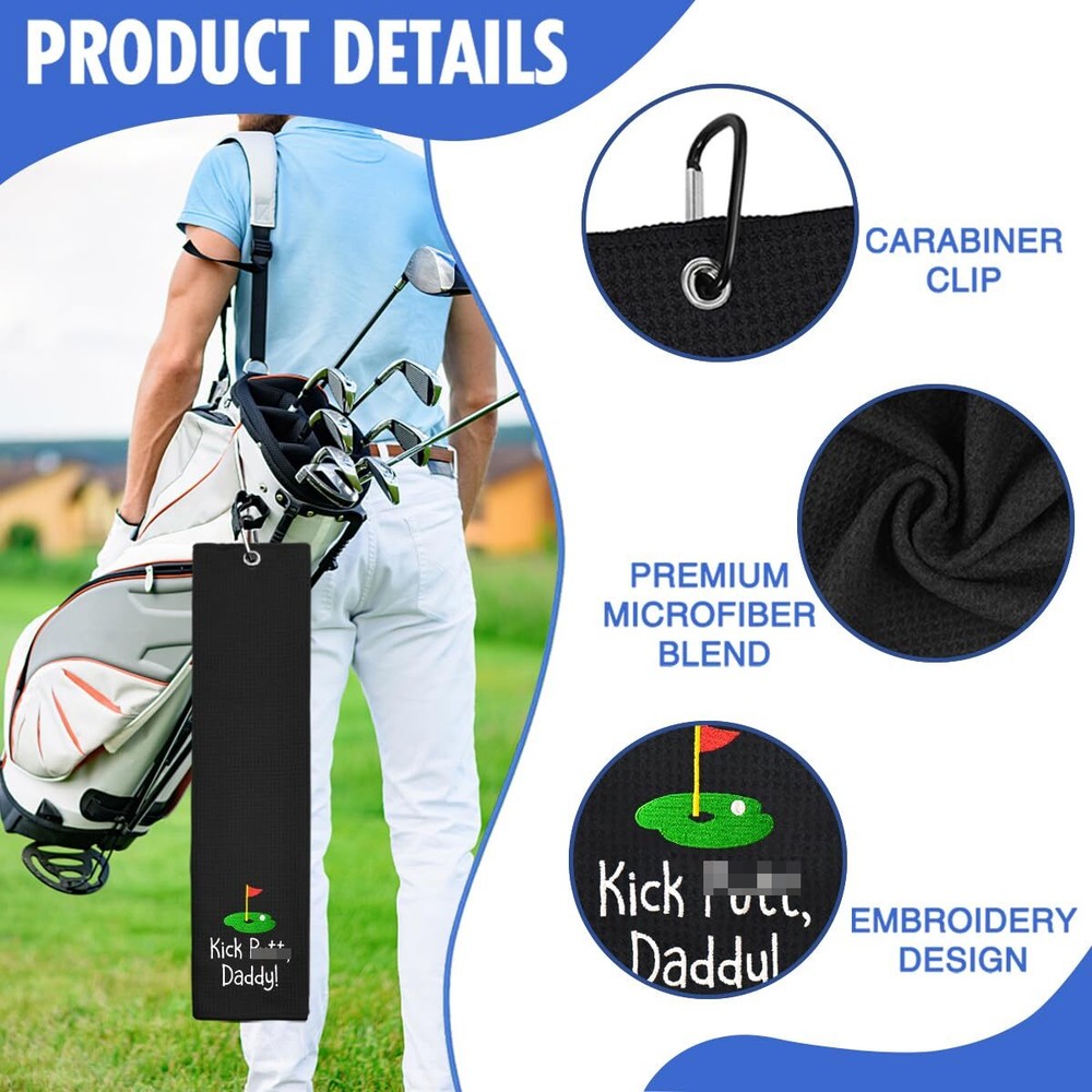 Hafhue Kick Put Daddy Embroidered Golf Towel for Dad Golf Accessories