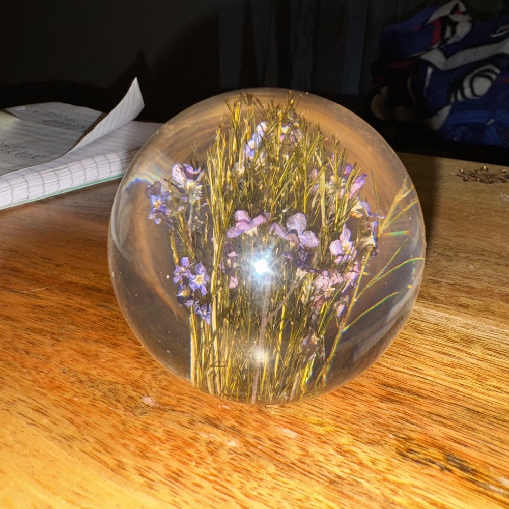$ 8.45W. Rolfe Vintage Clear and White Acrylic Lucite Dome Crocus Paperweight, Signed