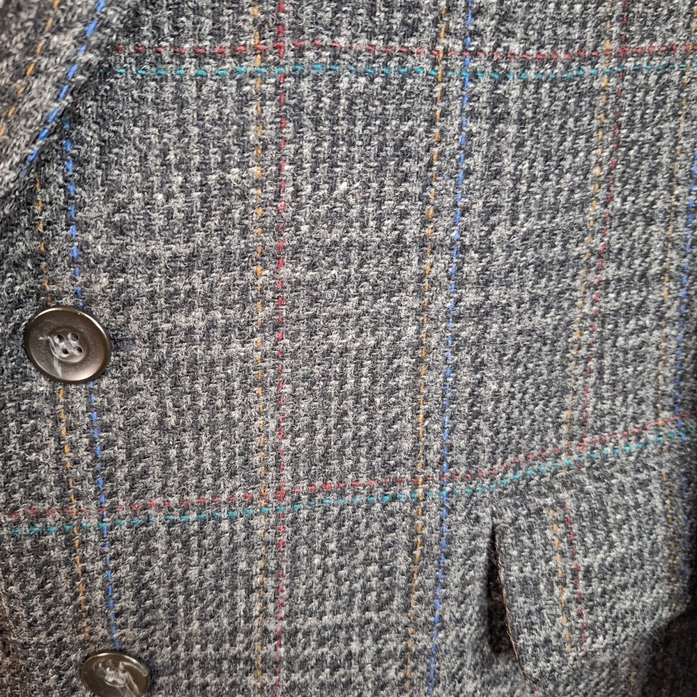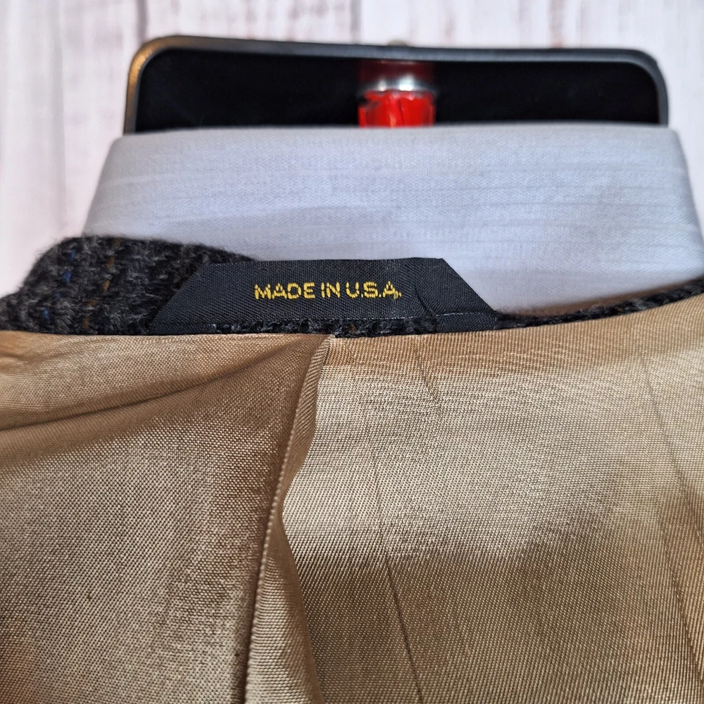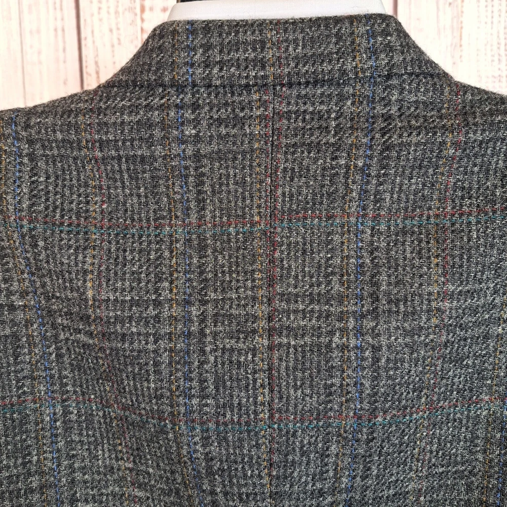 $ 39.6Tom James Mens 40R Dark Gray Plaid Double Vented Bespoke Blazer Jacket
