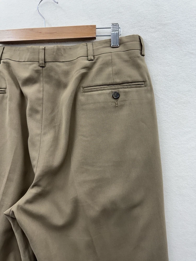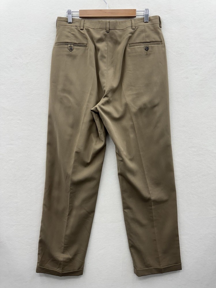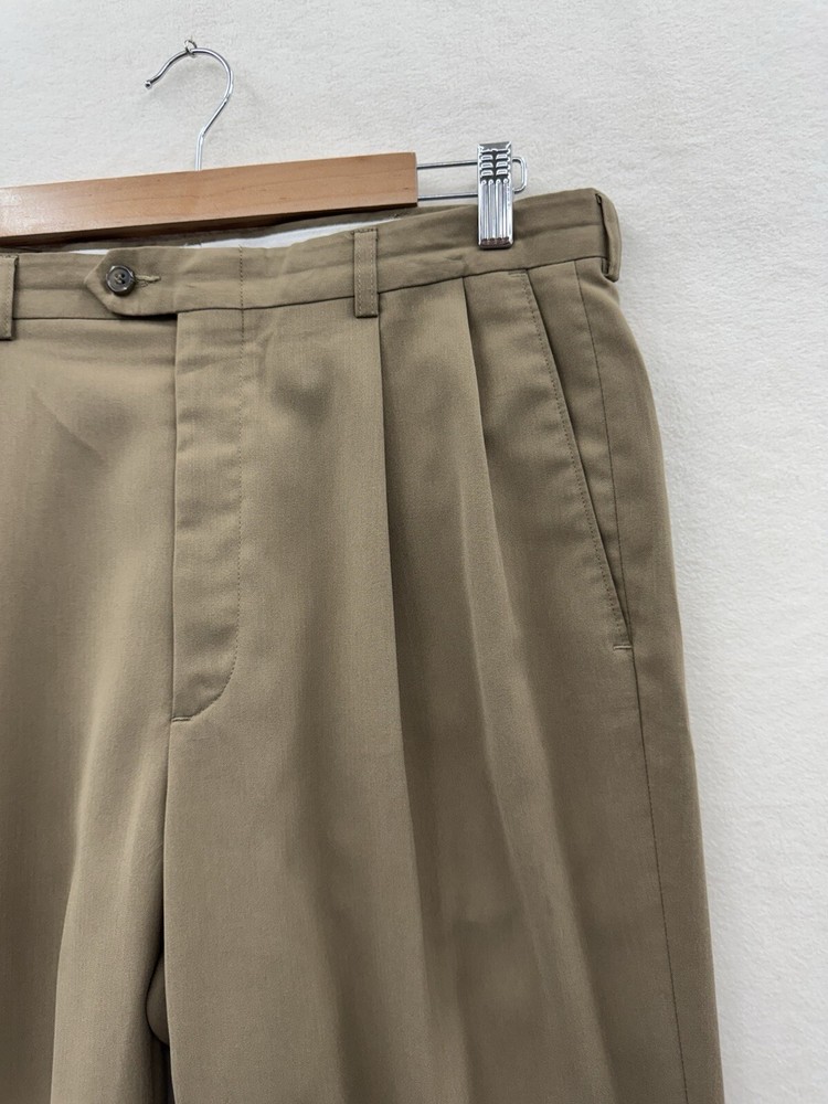 Elevate your wardrobe with these Haggar dress pants, perfect for any occasion. The classic fit and pleated front provide a comfortable and stylish look, while the beige khaki color and slash pockets add a touch of modern flair. The pants are made of lightweight and breathable polyester fabric, with easy care and stretch features for all-day comfort. These pants are versatile, suitable for travel, workwear, business, formal events, weddings, parties, or casual wear. The pants have a high rise waist of greater than 12 inches and a straight leg style. The Haggar Classic Fit model is designed for men with a waist size of 34 inches and an inseam of 31 inches. Made in Indonesia, these pants are a part of the Haggar product line, known for their quality and durability.