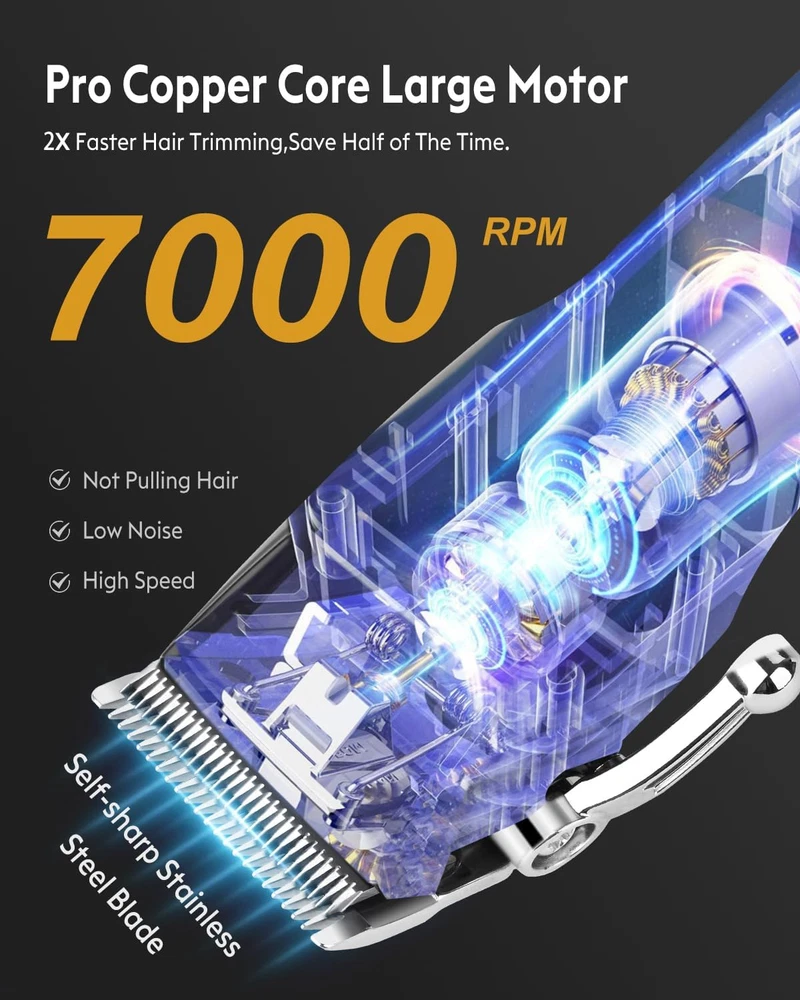 All in One Hair Clipper Grooming Kit: Two hair clippers, two USB charging cable, two dust proof guide combs, three regular guide combs (1/2/3 mm), six replaceable guide combs (1.5/3.0/4.5/6.0/10/13 mm), oil, English manual, cleaning brush. With this hair clipper set comes multiple accessories, the working is simple and easy to use. Hairstye design for the whole family can be done easily with one machine Large LED, USB Charge: Still worried giving up halfway for your self cut? Not more worries from YiLFo haircut kit with LED display, show the remaining power/charging reminder/oiling prompts. Still struggling with a corded restricted haircut? YiLFo wireless hair clippers with USB 2.5 hours fast charging for 150 minutes wireless running, and completely relieve your battery anxiety! The USB charge interface is compatible with various devices as computers. Worldwide universal voltage for travel Upgrade Blades Equipped Powerful Motor: Double layer steel blades, smooth and not stuck. Clipper and trimmer set with many different lengths combs(the number represents the reserved hair length), even beginners can easily learn to cut hair no excessive trimming or uneven layers. You can freely choose the length of hair. Strong power, up to 7000 rpm, stable performance, and cut hair machine for men can easy to complete satisfactory shape. Keep clippers dry as this will make the blades last longer Professional Salon Barber Clippers Sets: Professional maquinas para cortar cabello with complete accessories, suitable for hair stylists, hairdressing students, image designers, hairdressing knowledge lovers. As a barber, if you can combine your skills combined with this hair and barber kit, your haircutting work will be more comfortable and your haircutting business will flourish Sets for Him, After Sales: Matching maquina para cortar pelo packed in exquisite packaging boxes. On special occasions such as Anniversaries, Birthdays, Father's Day, Christmas, etc as a set to your loved ones, boyfriend, husband, dad, why not? YiLFo team launches quality products and provides timely service. If you have any questions about this two piece set cordless clippers for men, please contact us in time. Our Team will reply to you as soon as possible Product Description YiLFo Clippers and Trimmers Set, All in One, Sleek and Easy to Hold All sets are packaged in a beautiful black gift box, making your ideal gifts for Christmas, New Year, Birthdays and Anniversary!!!