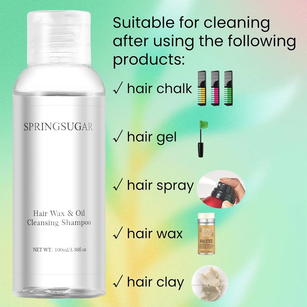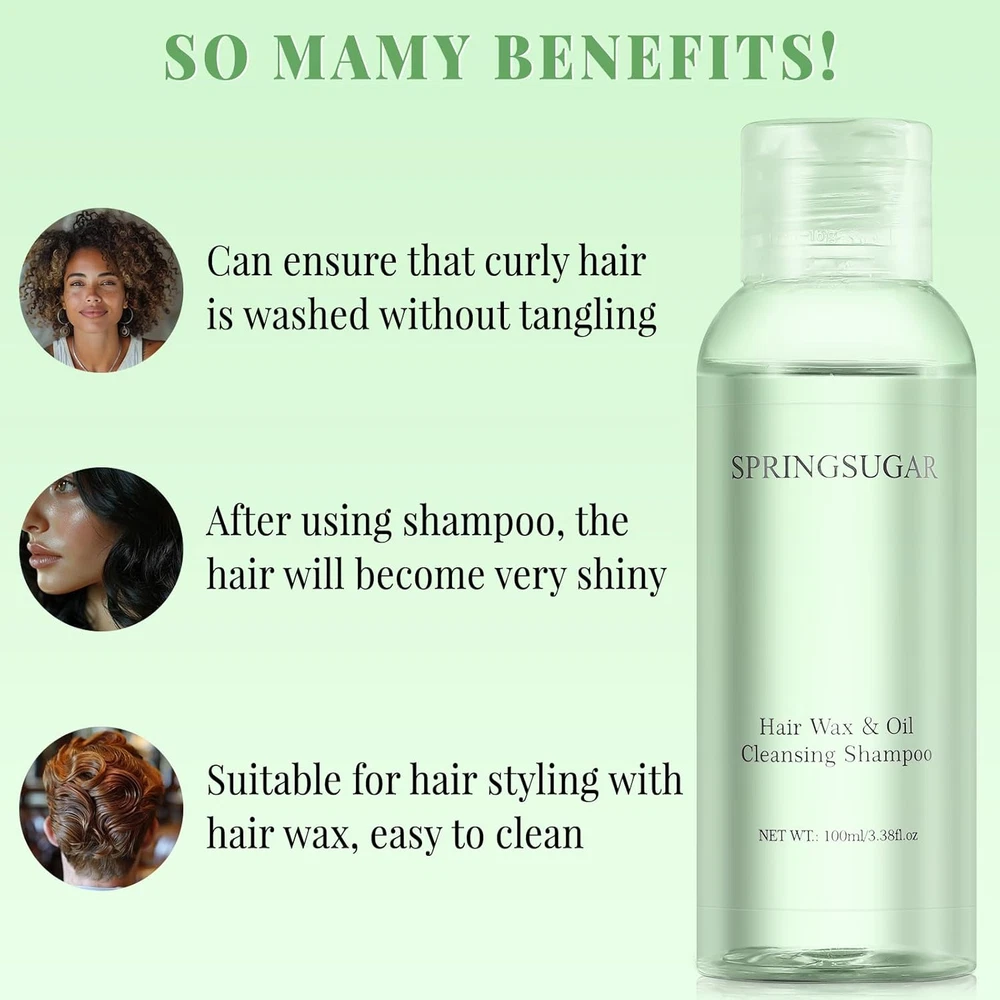 Specially Formulated for Hair Wax Removal - This shampoo is expertly crafted to break down and remove even the toughest hair wax residue. It effectively cleanses your hair without stripping away its natural oils, leaving it refreshed and manageable after every wash. Suitable for All Hair Types - Whether you have straight hair, curly hair, thick hair, or fine hair,it can also be used to wash hair styling products such as hair chalk,hair gel,hair spray, hair wax, hair clay, etc. Gentle & Nourishing Formula - Infused with gentle, nourishing ingredients, this shampoo provides a deep cleanse while caring for your scalp and hair. Its gentle formula ensures that it is suitable for frequent use and will not cause irritation even on sensitive skin. Easy to Use, Quick Results - Designed for efficiency, this shampoo quickly lathers and rinses out effortlessly. You’ll experience instant results with just one wash, removing wax buildup and leaving your hair feeling fresh, clean, and light. Compact & Travel-Friendly - With a convenient 100ml size, this shampoo is perfect for travel or or outdoor use. No matter where you are, you can easily put it in your gym bag, travel kit, or bathroom rack for quick and worry free hair care. Product Description Deep Cleansing Shampoo for Hair Wax Gel Spray Clay Removal – Compact, Convenient & Gentle Formula Say goodbye to the stubborn wax mask hair spray and use our specially formulated shampoo specially developed for this purpose. This deep cleansing solution removes product residue while leaving hair fresh and hydrated. Small and easy to carry, it's the perfect solution for taking care of your hair on the go! Safe & Gentle for All Hair Types No matter your hair type—whether straight, curly, thick, or fine—our shampoo is formulated with gentle ingredients that nourish your scalp while effectively removing wax and oil. It’s safe for everyday use, ensuring healthy, vibrant hair after each wash Gentle Formula: Safe for sensitive scalps and all hair types Nourishing Cleanse: Cleans without stripping your hair of essential moisture Daily Use Friendly: Gentle enough for regular use without causing irritation Powerful Deep Cleansing for Product Buildup Removes Wax & Oil Buildup: Specifically formulated for those who use styling products like hair wax sticks, hair spray, hair clay Deep Cleansing: Thoroughly cleanses while keeping your hair’s natural moisture intact Fresh & Clean: Leaves your hair feeling refreshed and light Travel-Friendly Size Safe for All Hair Types Perfect for Daily Use For Kids For Woman For Man