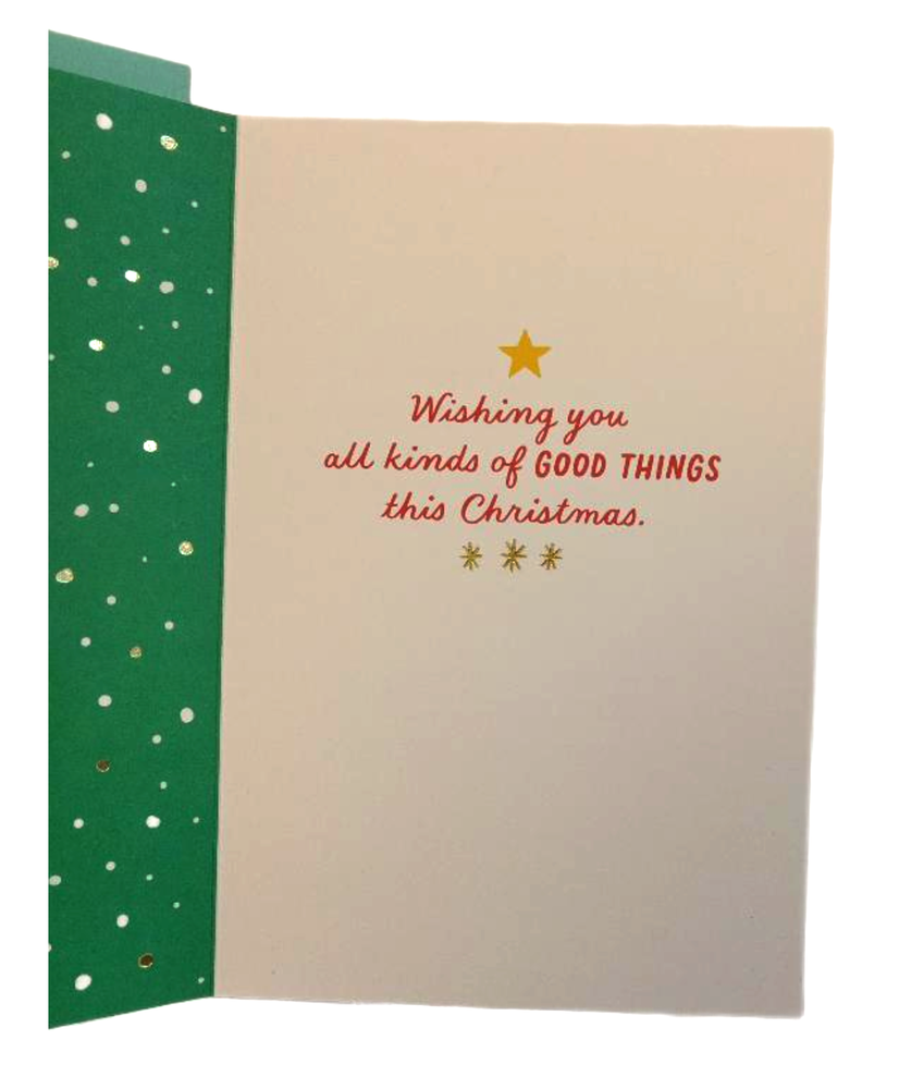 Hallmark Christmas Video Greeting Card Green Gold Joy Love Peace Happiness The Hallmark Christmas Video Greeting Card is a thoughtful and contemporary Christmas card featuring a green, gold, and white color scheme. This multipurpose card includes an envelope and is designed for women who appreciate a festive holiday scene. With the brand's reputation for quality and sentimental messages, this all-occasion card is sure to spread joy, love, and peace during the holiday season. Made in the United States, this card is a perfect choice for anyone looking to send warm wishes to loved ones during Christmas. *** Item Descriptions *** Brand - Hallmark Condition - New Color - Green, Gold, White Type - Video Greeting Christmas Card Theme - Christmas Holiday Scene Recipients To - Multipurpose UPC# - 009200914797