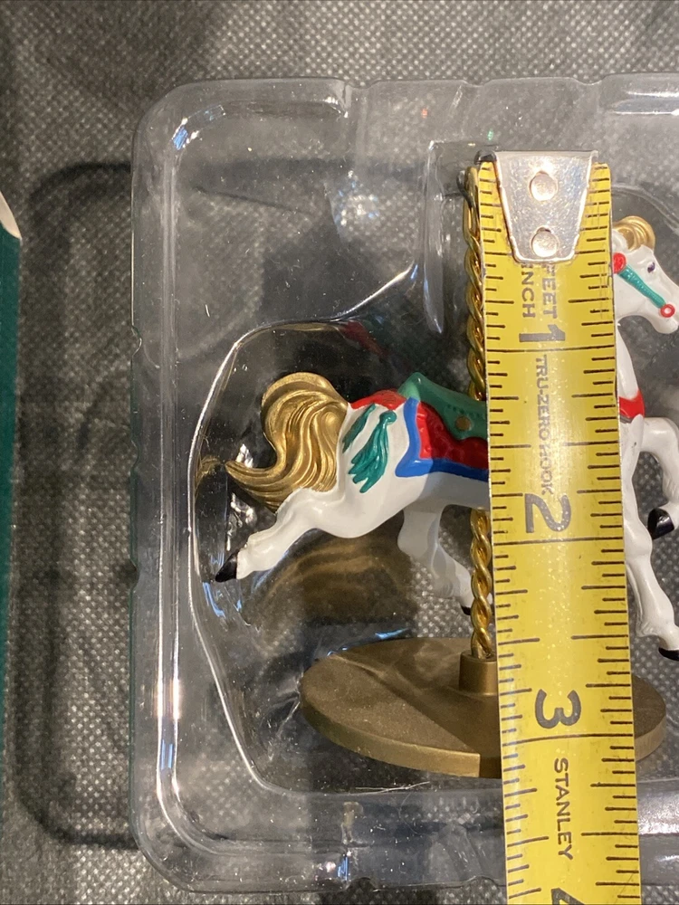 Hallmark Keepsake 1989 Carousel Horse”Snow” Ornament In Original Box. Condition is Used. Shipped with USPS Ground Advantage.