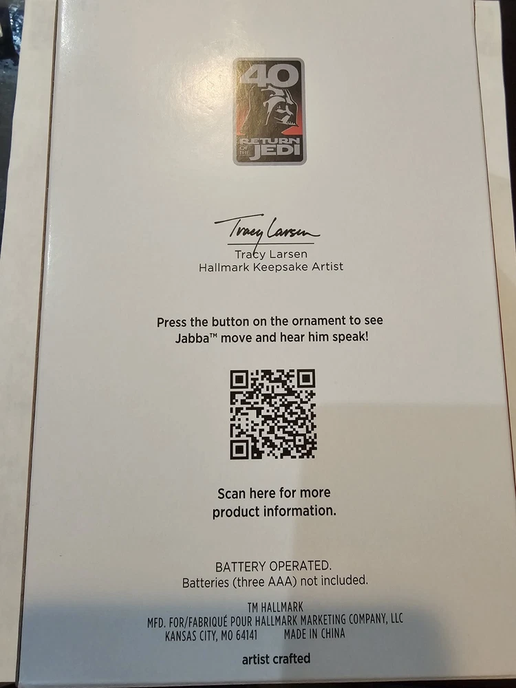 Hallmark Keepsake 2023 Star Wars Jabba The Hutt Sound and Motion Ornament