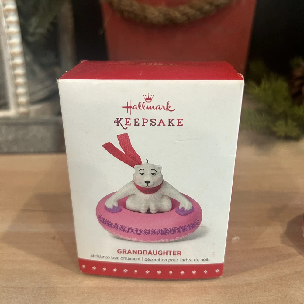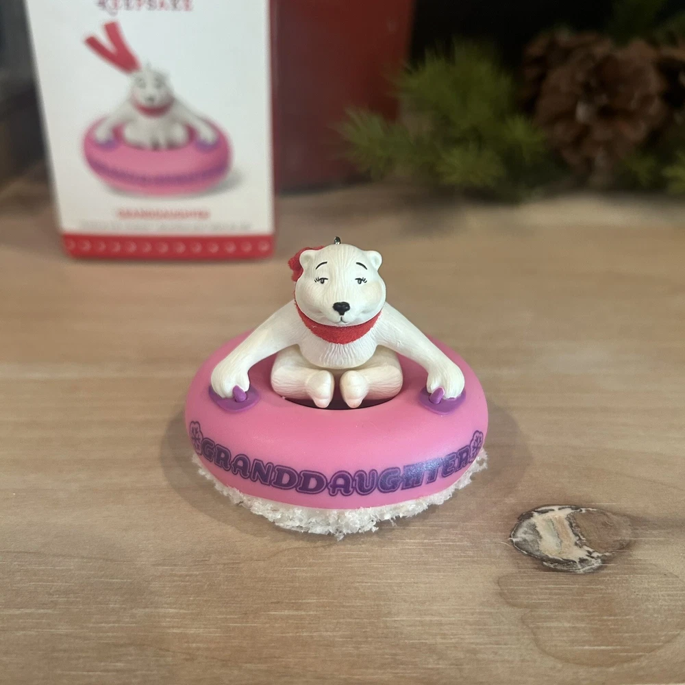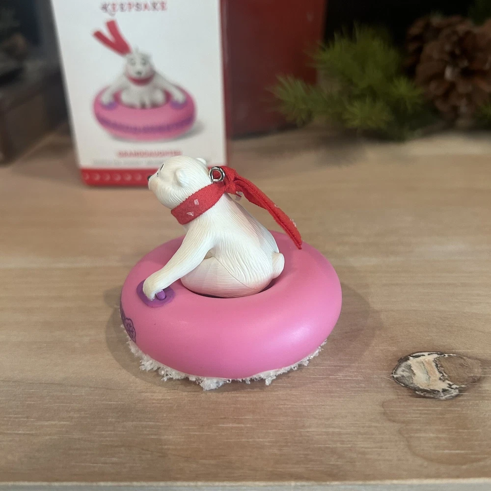 Hallmark Keepsake Granddaughter Polar Bear Pink Tube Christmas Ornament 2015