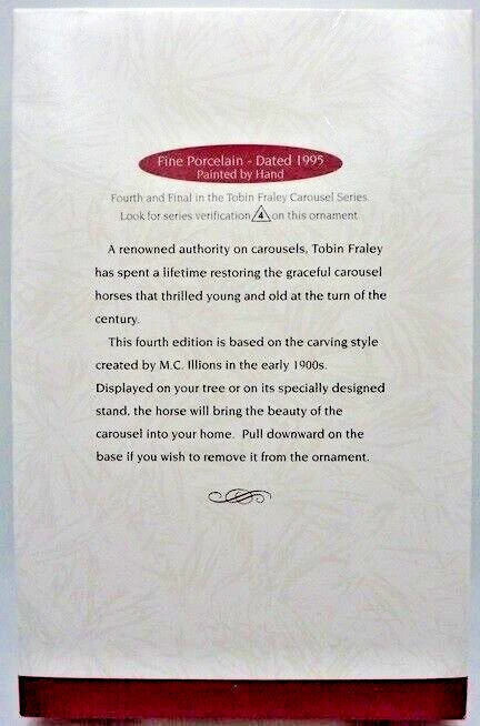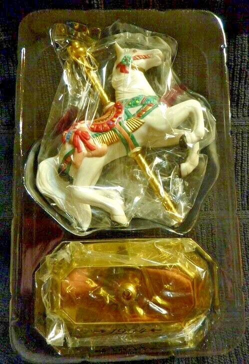 Subject: Christmas Theme: Holiday Time Period Manufactured: 1990-1999 Color: Multicolor Country/Region of Manufacture: Thailand Personalize: No Shape: Horse Type: Ornament Brand: Hallmark Collection: Ornaments Seller Notes: “In like new condition.” gtin13: Does not apply Original/Licensed Reproduction: Original Occasion: Christmas Set Includes: Ornament Material: Mixed Materials Antique: No UPC: Does not apply Number of Items: 4 Vintage: No Pattern: Carousel Horses Handmade: No