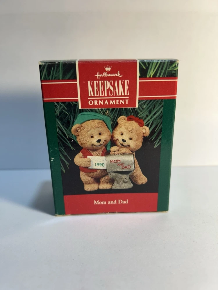 This Hallmark Ornament from 1990 features a heartwarming design of a mom and dad ornament, perfect for any collector or for someone special. Crafted with care and attention to detail, this ornament is sure to bring joy to any holiday or seasonal display. The brand is Hallmark and the type is an ornament, specifically from the Ornaments collection. The set includes one ornament and the recipient is a dad. The year manufactured is 1990 and the subject is a dad. This item is a must-have for any collector or for someone special who loves Hallmark ornaments.