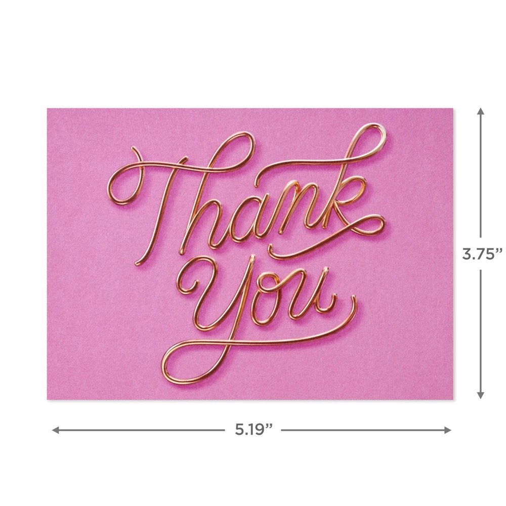 Send a note of gratitude to friends, family, coworkers, and other loved ones with this box of 40 thank you notes. Bulk set of blank thank you cards is great to have on hand for birthdays, bridal showers, baby showers, weddings, or everyday occasions. Fun pink design feature unique script lettering. The Hallmark brand is widely recognized as the very best for greeting cards, gift wrap, and more. For more than 100 years, Hallmark has been helping its customers make everyday moments more beautiful and celebrations more joyful. Send a note of appreciation to friends and family with this bulk pack of pink thank you cards Set of thank you notes includes 40 cards in a single design with coordinating envelopes; design features a solid pink background with pretty script lettering that reads, "Thank you" Cards are blank inside so you can write a personalized thank you note to friends, family, coworkers, neighbors and more; perfect for birthdays, bridal showers, weddings, graduations or everyday occasions Greeting cards measure approximately 4" x 5.5" and come with coordinating envelopes Printed on high-quality paper stock, Hallmark's greeting cards are made with paper from responsibly managed forests