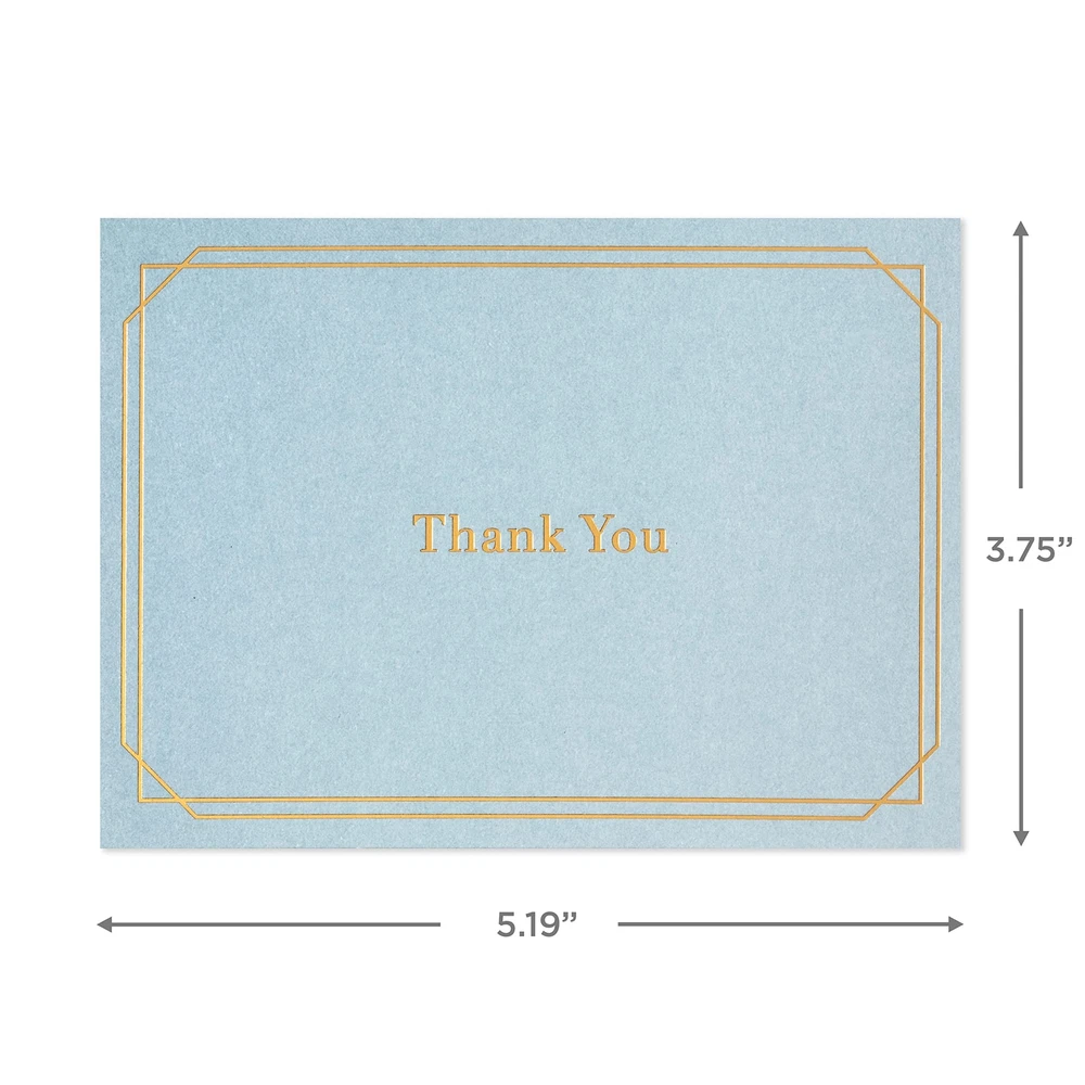Send a thank you note to friends or family with these understated thank you note cards. All the cards in this boxed set are blank inside, giving you plenty of space for writing a personalized message. Bulk pack makes writing lots of thank yous easy as can be. The perfect addition to your stationery supply. The Hallmark brand is widely recognized as the very best for greeting cards, gift wrap, and more. For more than 100 years, Hallmark has been helping its customers make everyday moments more beautiful and celebrations more joyful. Always be prepared to send a note of appreciation with this boxed set of simple thank you cards, appropriate for all occasions. Classic folded cards feature 6 designs (4 of each design), with foil accented messages of thanks on solid neutral backgrounds. Sophisticated thank you cards are a perfect way to send a note of thanks after birthdays, weddings, baby showers, holidays, or everyday kindnesses. Pack includes 24 cards with coordinating envelopes. Notecards are blank inside and measure 5.2" x 3.75". Printed on high quality paper stock, Hallmark's stationery is made with paper from well-managed forests.