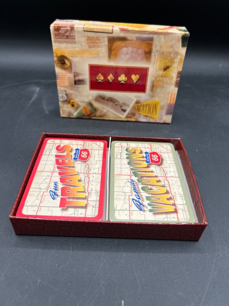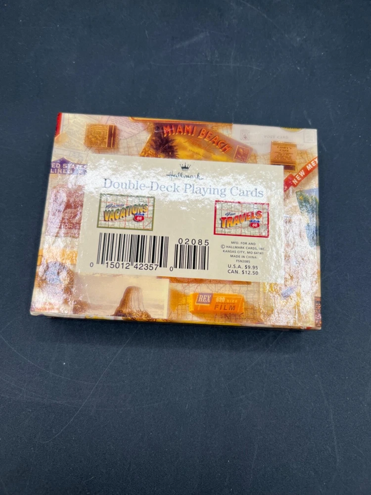 The Hallmark Travels Vacation Route 66 Double Deck Playing Cards are a beautifully designed set featuring a travel theme inspired by the iconic Route 66. Made in China, these modern playing cards are perfect for collectors and enthusiasts of unique card games. The double deck set includes all the cards needed to enjoy a fun game night with friends and family, making it a great addition to any card game collection.