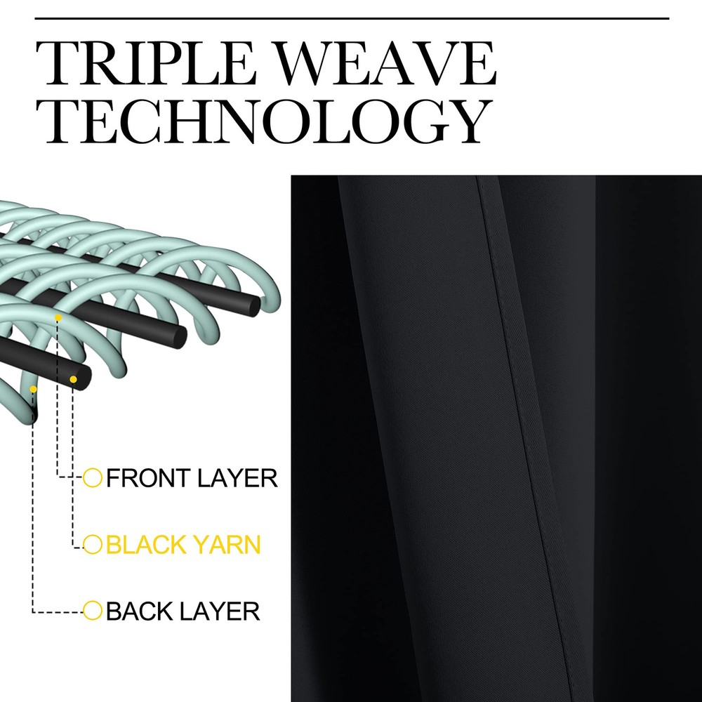 ELEGANT DESIGN: 2 panels per package. Each Blackout Curtain Panel measures 42 inches wide x 63 inches long. The drapery is constructed with rod pocket, fitting the curtain rod of your choice up to 2 inches in diameter, making the curtains easy to install and slide. LENGTH ADJUSTABLE: Don't worry if this blackout curtains are a few shorter than your windows. You can hang this curtain panels with rings and hooks. That could be adjustable for height max 3 inches. Hooks space distance around 4-6 inches. AMAZING MATERIAL: This unique, soft and heavy-duty blackout fabric is woven with three-layer construction. The middle layer of black yarns creates a curtain panel that is excellent for blocking out 85%-99% of light (Dark color works better on blocking light) while providing privacy. GOOD CHOICE: Perfect drapery option for anyone seeking to block daylight, take a nap, or keep sun glare off your TV. Besides, you can choose blackout valance and sheer curtains in the store to match. Such curtain sets provide a more permanent harmonious window dressing. EASY MAINTENANCE: Machine or hand washable. Mild detergent no bleaching. Low-temperature ironing. Measure your pole and window size before you choosing curtains.