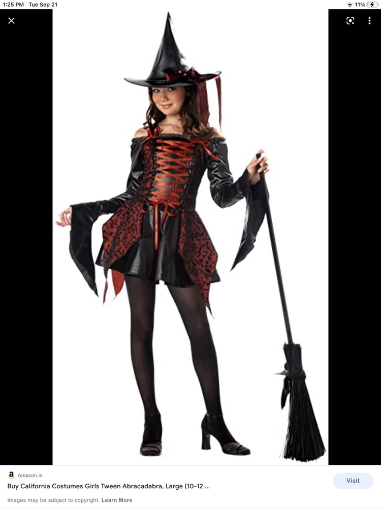 Halloween California Costume Abracadabra Lace-Up Dress Sz Tween X X-Large. Full length sleeves. Last picture is a stock picture for example only. It DOES NOT come with any accessories, only the dress! Dress with attached petticoat Could be used for a witch, devil, vampires etc whatever you can imagine. See all pictures as they are part of the description You get the actual item pictured Sz Tween XXL