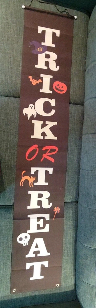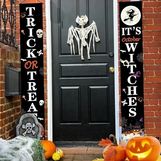 Create a Spooky Atmosphere: The Halloween signs print "Trick or Treat" and "It’s October Witches" decorated with cute designs of ghost, spider, bat. Perfect for scaring trick-or-treaters and impressing visitors! The Halloween outside decorations will bring the perfect ambiance to your doorstep Durable and Weather-Resistant: Made from high-quality 600 D fabric, wrinkle-resistant and reusable, the Halloween party banner are designed to withstand outdoor conditions. Rain or shine, the Halloween decor will remain intact and retain their vibrant colors Versatile Indoor and Outdoor Decorations: Whether you want to decorate your front porch, backyard, or indoor space, the Halloween decor banner are suitable. You can easily hang it on your front porch, fireplace, yard, garage, or use it as a fun Halloween photo shoot or Halloween party decoration Easy to Use: Halloween porch signs come pre-assembled, ready to hang for indoor outdoor Halloween display. Each Halloween decorations banner measures 72"x12", there are 2 grommet holes at the bottom to secure banner against the wind