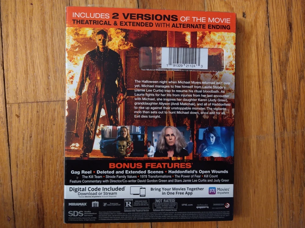 From Rotten Tomatoes: Minutes after Laurie Strode (Jamie Lee Curtis), her daughter Karen (Judy Greer) and granddaughter Allyson (Andi Matichak) left masked monster Michael Myers caged and burning in Laurie's basement, Laurie is rushed to the hospital with life-threatening injuries, believing she finally killed her lifelong tormentor. But when Michael manages to free himself from Laurie's trap, his ritual bloodbath resumes. As Laurie fights her pain and prepares to defend herself against him, she inspires all of Haddonfield to rise up against their unstoppable monster. The Strode women join a group of other survivors of Michael's first rampage who decide to take matters into their own hands, forming a vigilante mob that sets out to hunt Michael down, once and for all. Evil dies tonight. Brand New Factory Sealed Blu Ray